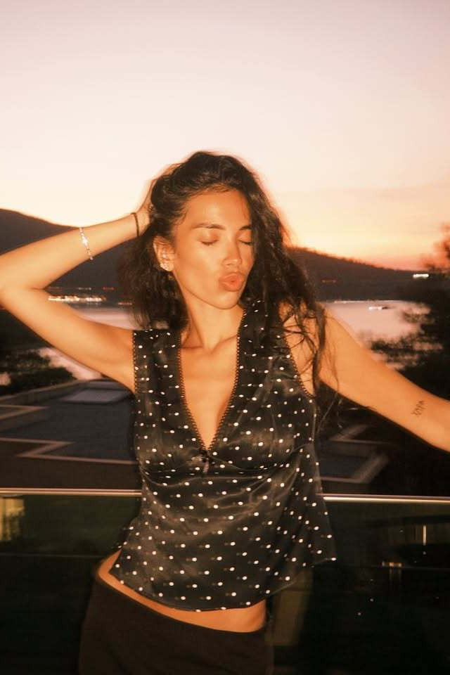 Winter to Summer Outfit Po, Polka Dot V- Neck Cami Crop – Vacation Outfits