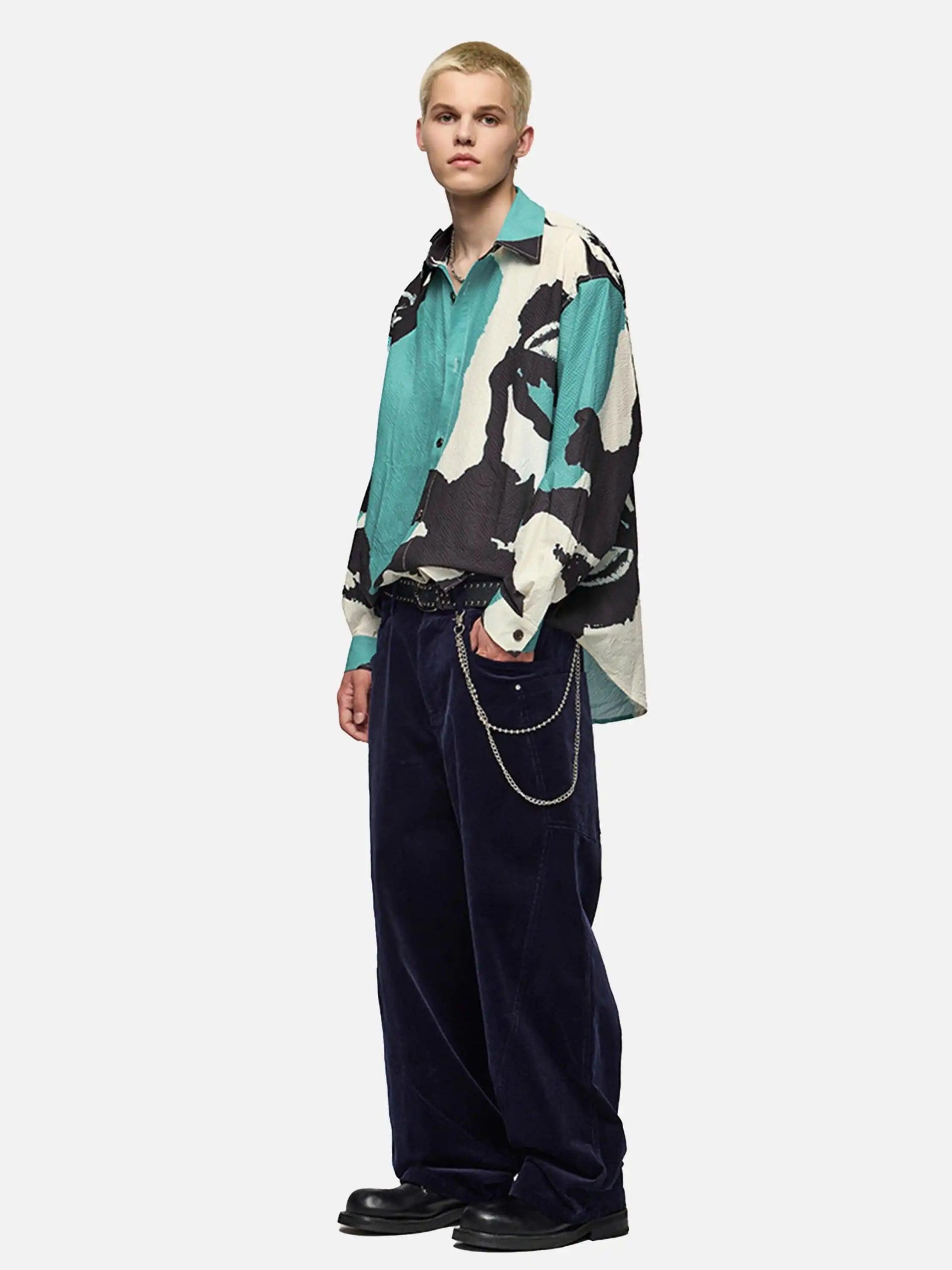 Transform your look with this striking shirt, where bold patterns collide with a vibrant green palette, making every street your runway. The textured fabric feels as good as it looks, offering a relaxed fit that’s perfect for layering over your favorite tee. Available in sizes M, L, and XL, this piece ensures you stand out whether you’re hitting up the city or chilling with friends. Pair it with dark denim for the ultimate y2k outfit inspo. Elevate your streetwear fashion game effortlessly.