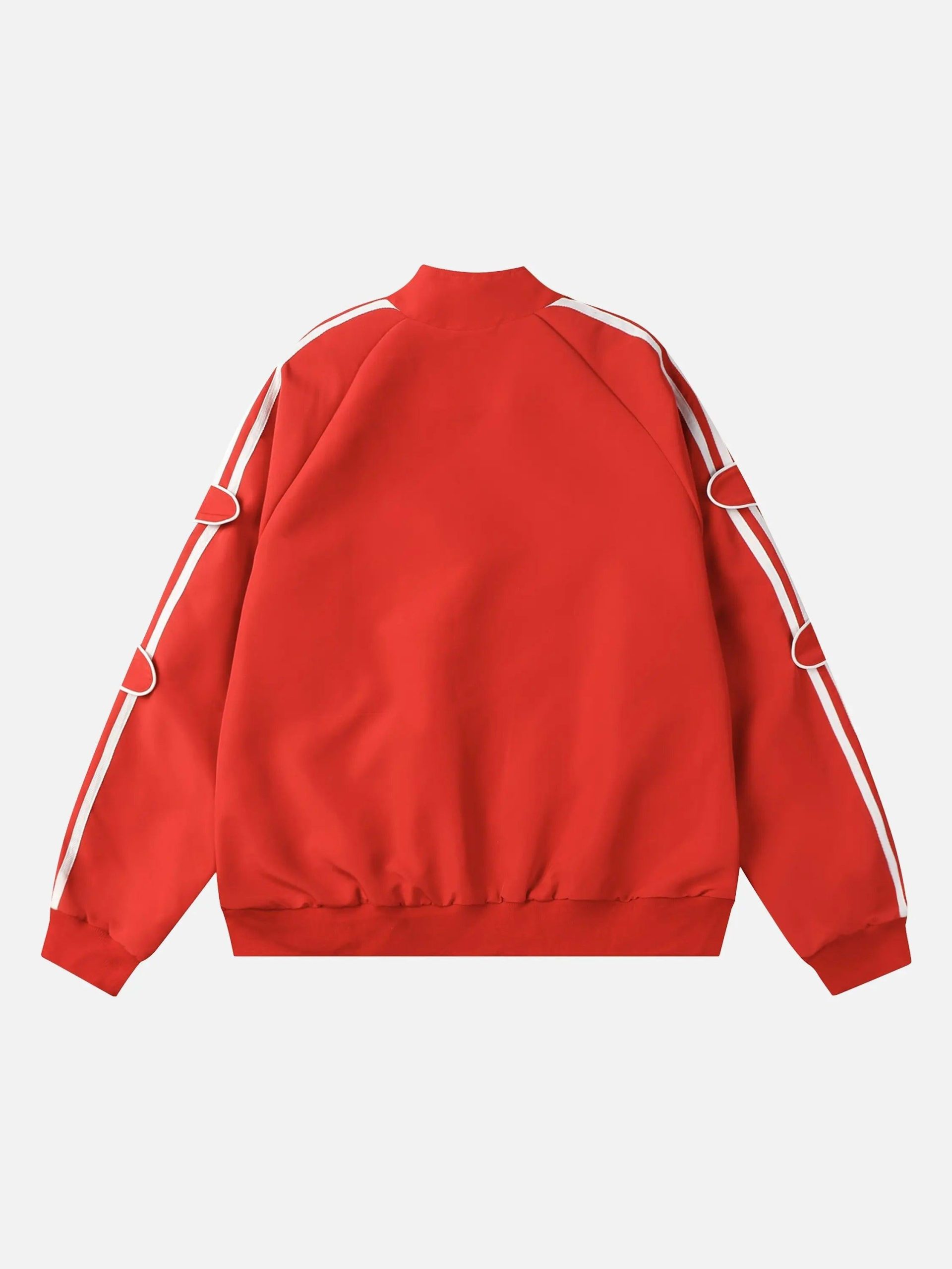 Turn heads with this audacious jacket featuring bold, contrasting white piping that races along the vibrant red backdrop, creating a sleek, streamlined look. The smooth texture and relaxed fit ensure comfort and style, making it a staple for any urban wardrobe. Whether you’re heading out in the classic black or daring red, this piece offers versatility in sizes M, L, and XL, fitting right into your streetwear fashion collection. Pair it with your favorite jeans and sneakers for effortless outfit inspo that captures the spirit of y2k vibes. Ready to redefine your look?