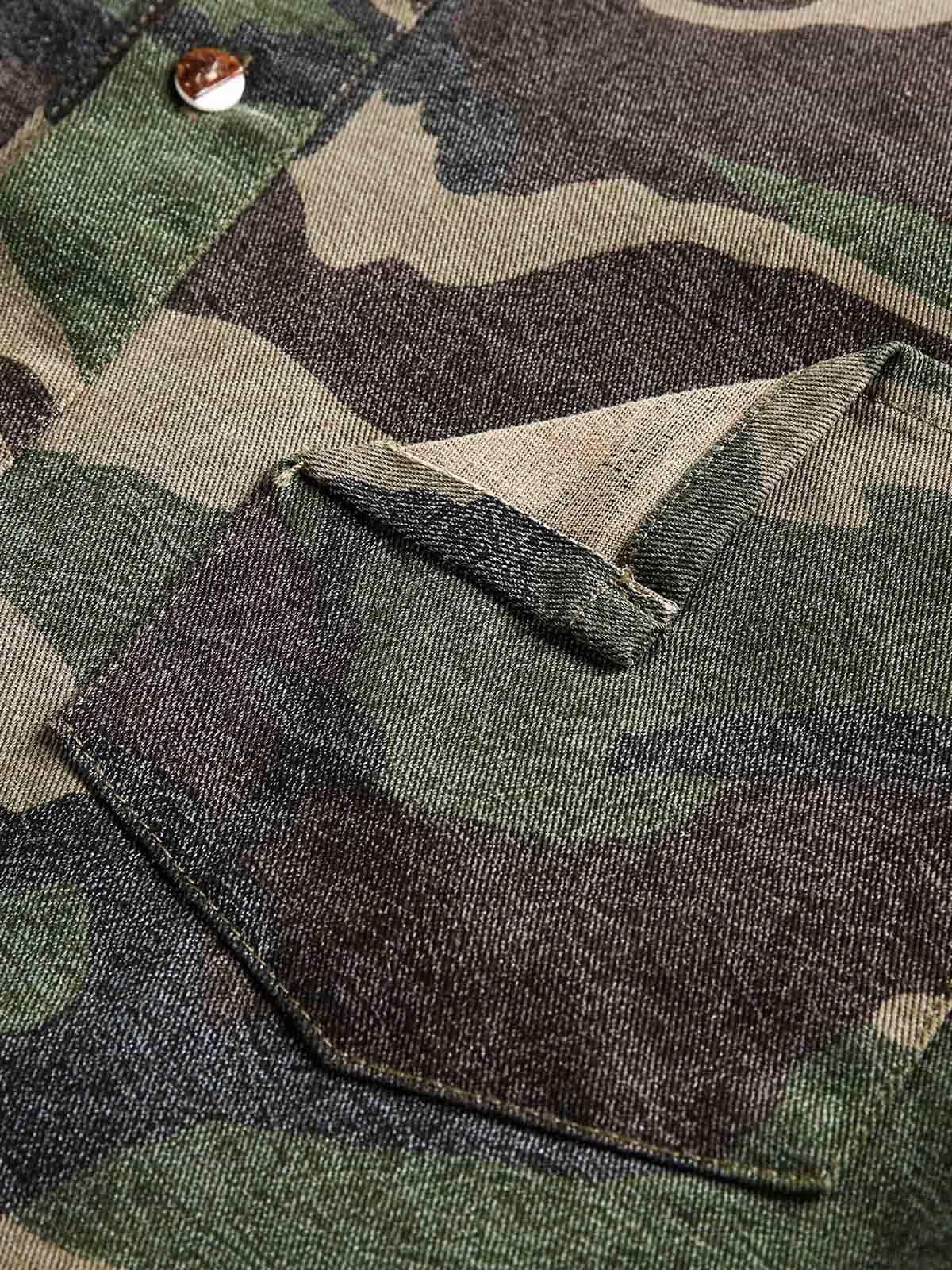 Transform your look with this daring piece that combines raw edge detailing with a bold statement graphic, perfect for those who walk the line between streetwear fashion and rebellious flair. The classic camouflage pattern offers a timeless vibe, while the distressed hems and embroidered accents bring a modern twist that complements any urban outfit idea. Designed to fit comfortably in sizes ranging from M to 2XL, this shirt drapes effortlessly, making it the ideal choice for layering or standing alone as a centerpiece. Grab yours now and redefine what it means to be effortlessly cool.