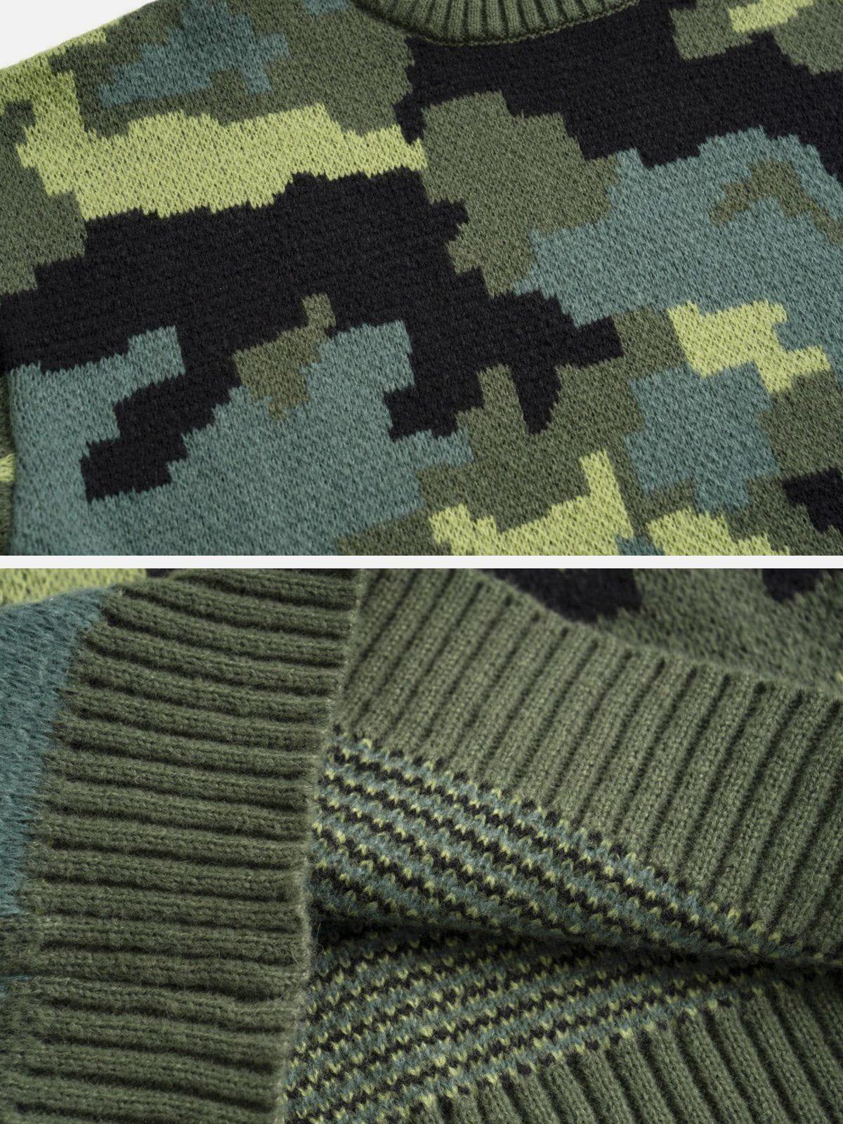 Unleash your inner rebel with this green camo sweater, blending bold patterns and urban flair in a seamless fusion of style and comfort. The intricate camouflage design, woven in varied green hues, creates a dynamic texture that demands attention on the streets. With a relaxed fit and soft, cozy feel, it’s perfect for layering over your favorite streetwear fashion pieces. Available in sizes S, M, L, and XL, this sweater effortlessly adapts to your unique style, providing endless outfit inspo for any urban adventure. Embrace the bold and make it yours today.