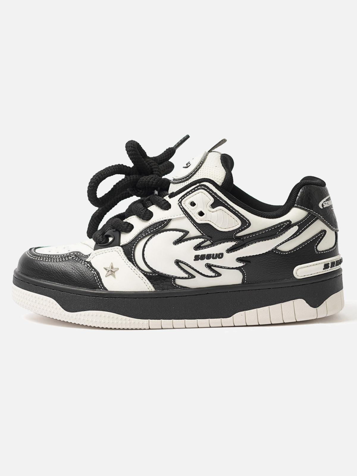 The TALISHKO Contrast Color Star Chucky Sneakers combine leather and mesh for a sleek, urban look. Featuring a lace-up closure and a perforated design, these sneakers boast a chunky sole perfect for casual, sporty vibes. The black and white color scheme offers versatile style, while the durable construction ensures long-lasting wear. Designed for comfort and breathability, they’re ideal for all-day adventures.