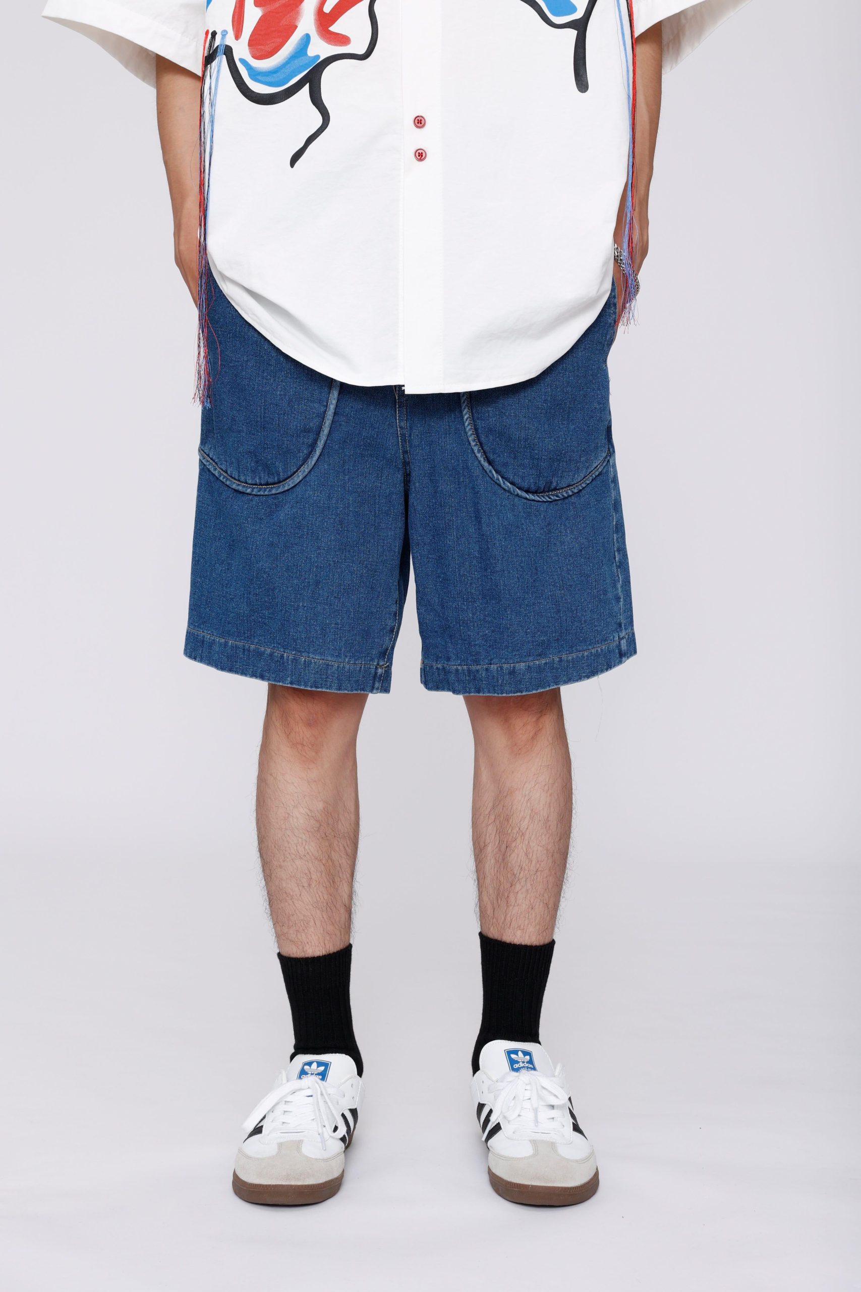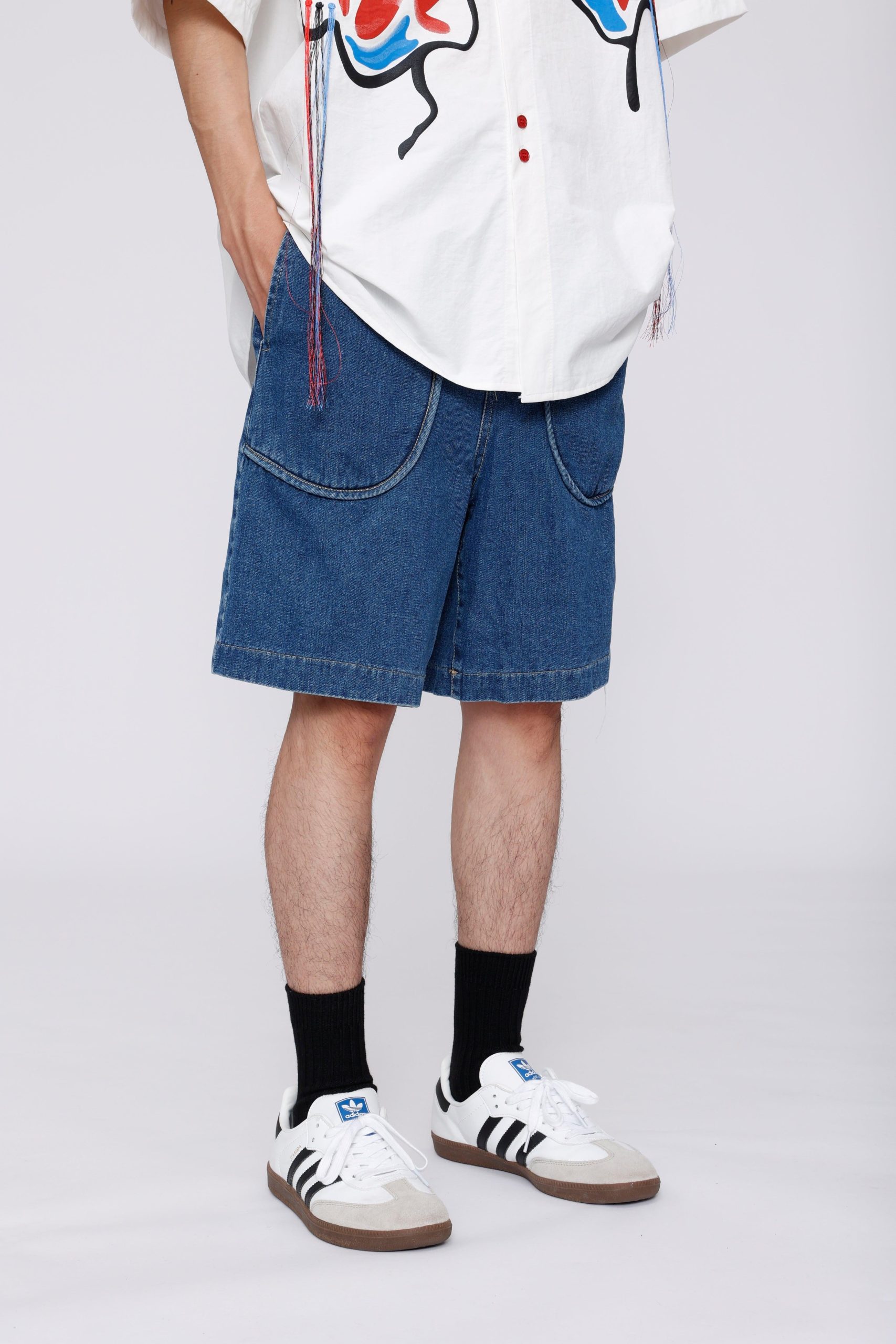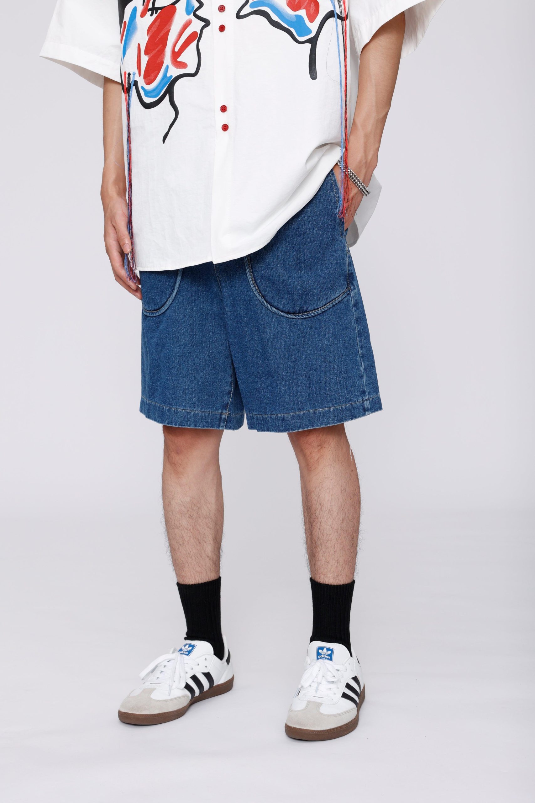 Revamp your summer style with these edgy denim shorts, featuring a bold, oversized pocket design that adds a fresh twist to your wardrobe. The rich blue denim exudes urban cool, while the relaxed fit ensures comfort for all your warm weather adventures. With a versatile one-size fit, these shorts are perfect for pairing with your favorite graphic tees or a sleek tank to nail that effortless summer fashion inspo. Slip into these shorts and let your style do the talking.