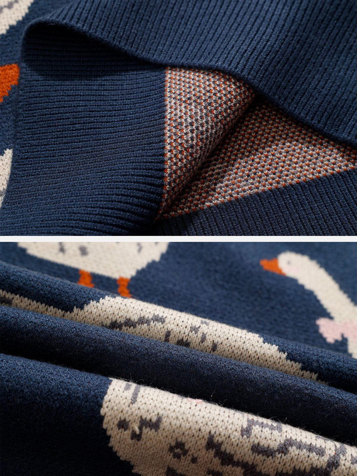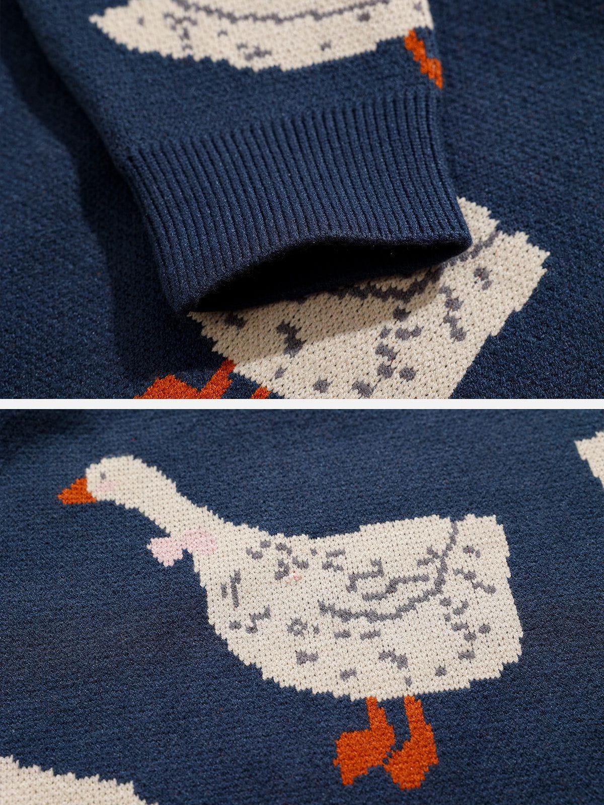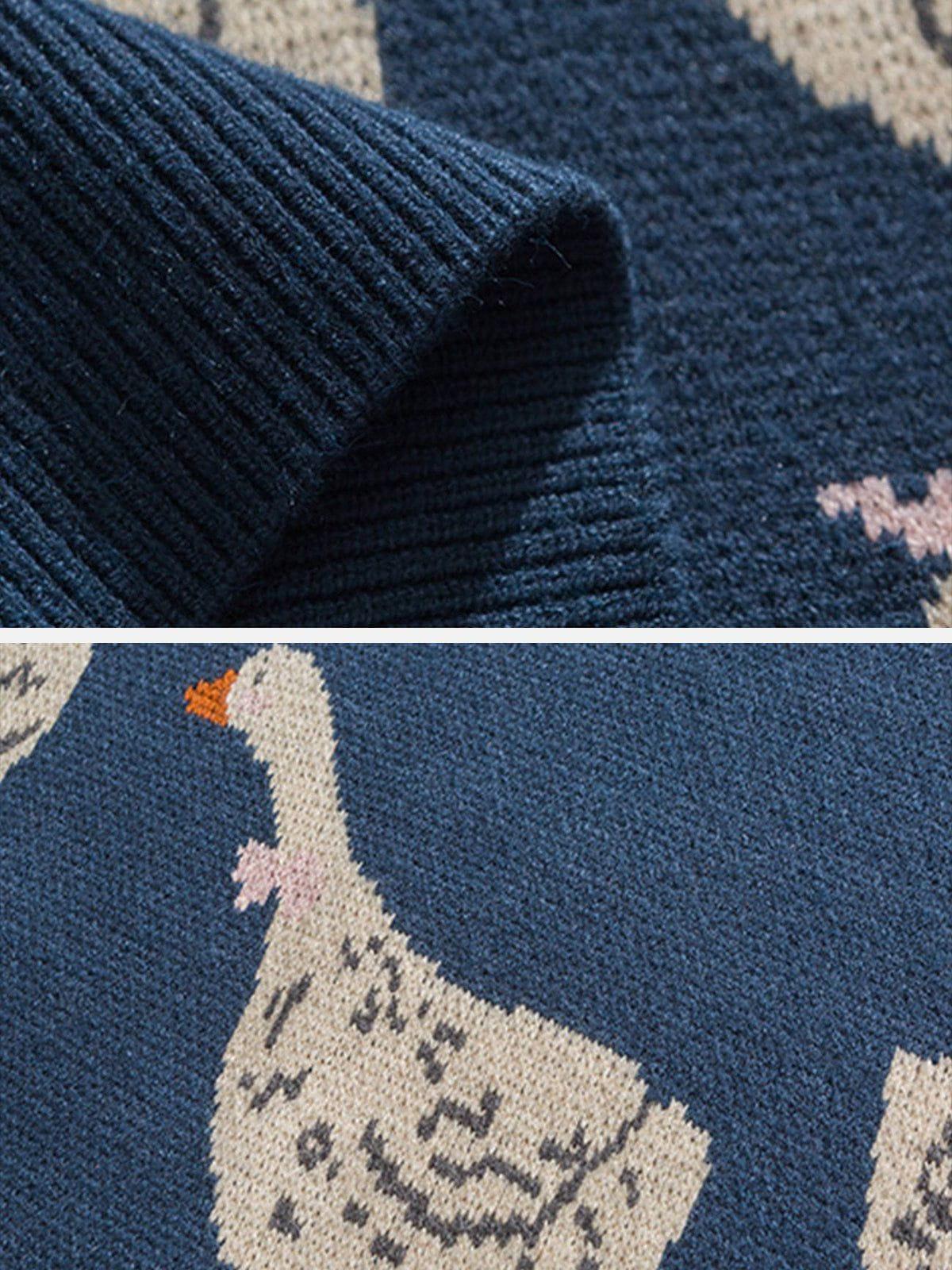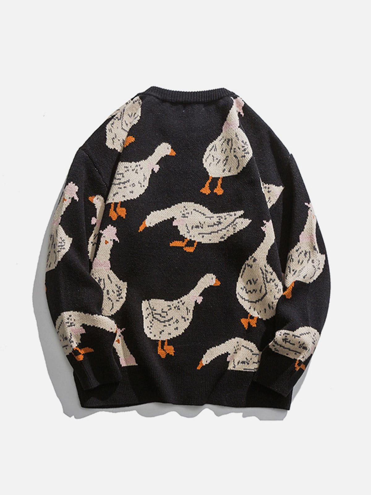 Express your unique vibe with a sweater that’s as bold as your streetwear fashion game. This piece blends playful quirkiness with urban style, featuring a standout goose design that pops against a rich blue backdrop. The soft, textured knit ensures comfort and warmth whether you’re strolling through the city or kicking back with friends. Available in sizes S to XL, this sweater’s relaxed fit makes it perfect for layering over your favorite tee or under a sleek jacket. Choose between classic black or eye-catching blue to match your mood and your look. Ready to turn heads? This is your go-to choice for standout outfit inspo.