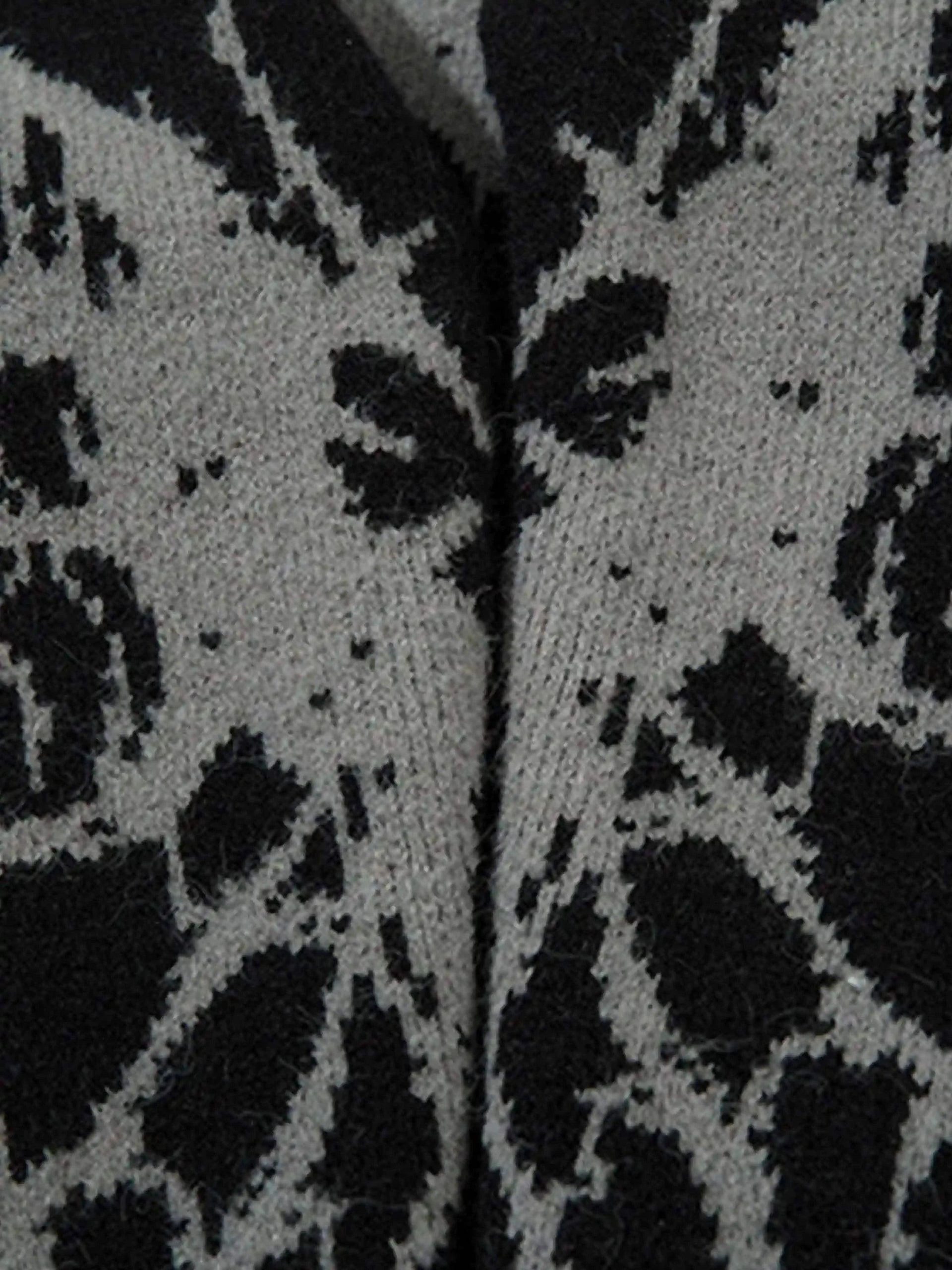 Defy the ordinary with this edgy, bold cardigan that transforms any outfit into a masterpiece of streetwear fashion. The striking black canvas comes alive with an intricate gray winged design that stretches across the chest, giving you an avant-garde edge. Its relaxed fit and soft, textured knit ensure comfort and versatility, whether layered over a graphic tee or paired with your favorite Y2K outfits. Available in sizes S to XXL, this piece is your go-to for both laid-back and daring looks. Dive into the urban scene with confidence and let your style soar.