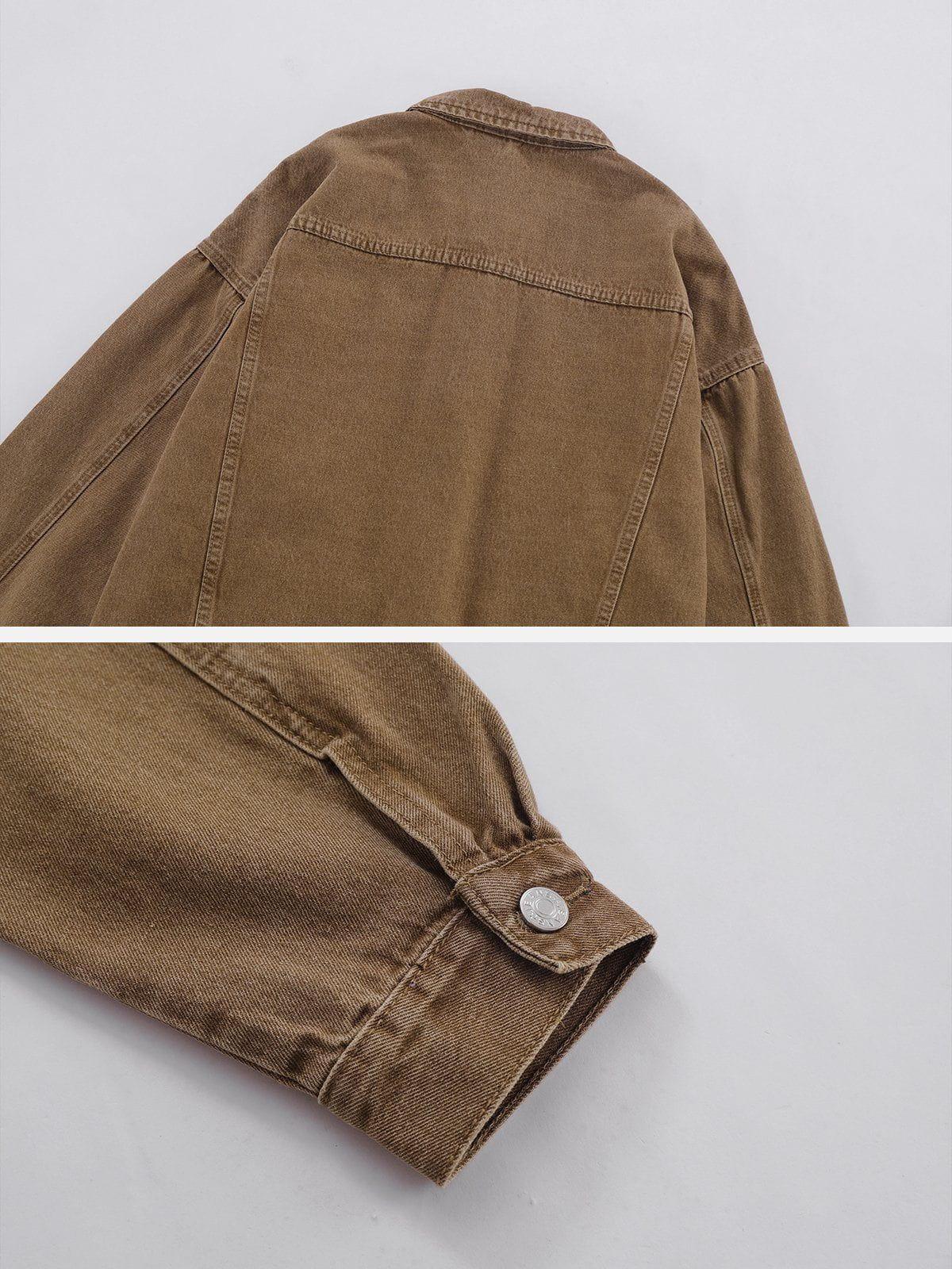 Defy the ordinary with this bold fusion of rugged texture and urban flair, where a khaki denim body meets a sleek gray hoodie insert for a truly distinctive streetwear look. The jacket’s relaxed fit makes it an ideal layering piece, effortlessly transitioning between seasons. Offered in versatile shades of Khaki, Black, and Blue, and available in sizes S through XL, it’s designed to suit any bold personality. Pair it with your favorite sneakers for an effortless y2k vibe. Elevate your streetwear fashion game with this standout piece that demands attention.