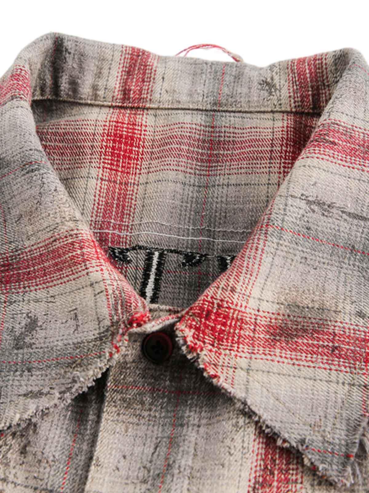 Embrace the gritty essence of streetwear fashion with this bold plaid shirt, where distressed textures meet striking red accents for a look that defies the ordinary. The oversized fit, available in M, L, XL, and 2XL, promises comfort without sacrificing style, making it a versatile piece for layering or rocking solo. The eye-catching ’01’ graphic on the back adds a rebellious flair, perfect for those who dare to stand out. Pair it with your favorite jeans or shorts for effortless Y2K outfit ideas that keep you ahead of the curve. Ready to redefine your wardrobe?