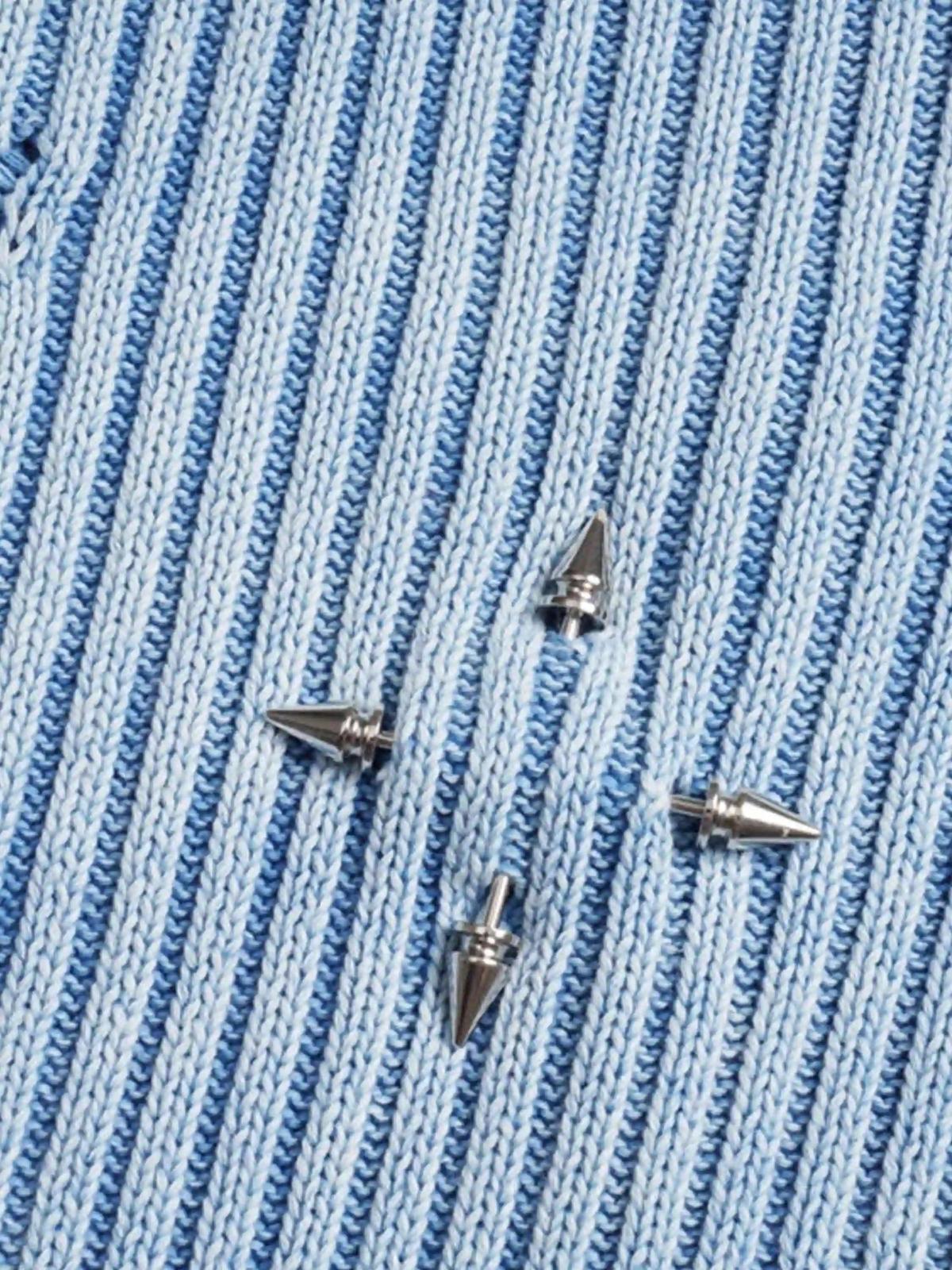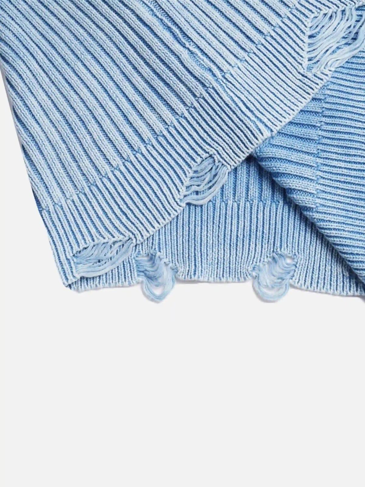 Rebel against the ordinary with this textured blue knit, featuring artfully distressed details that scream urban edge and modern flair. The ribbed design offers a relaxed fit, making it perfect for layering over your favorite streetwear essentials. Available in sizes M to XXL, this piece ensures you’re wrapped in comfort and style, whether you’re out on the town or chilling at home. Pair it with black denim and sneakers for effortless y2k outfit ideas that inspire. Grab yours now and redefine your streetwear fashion game.