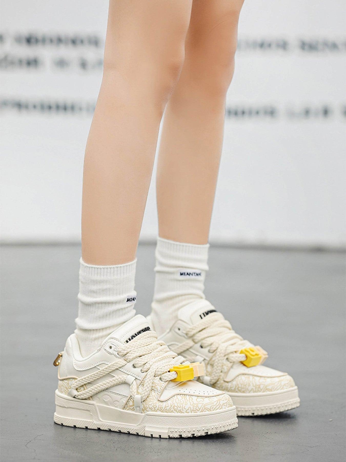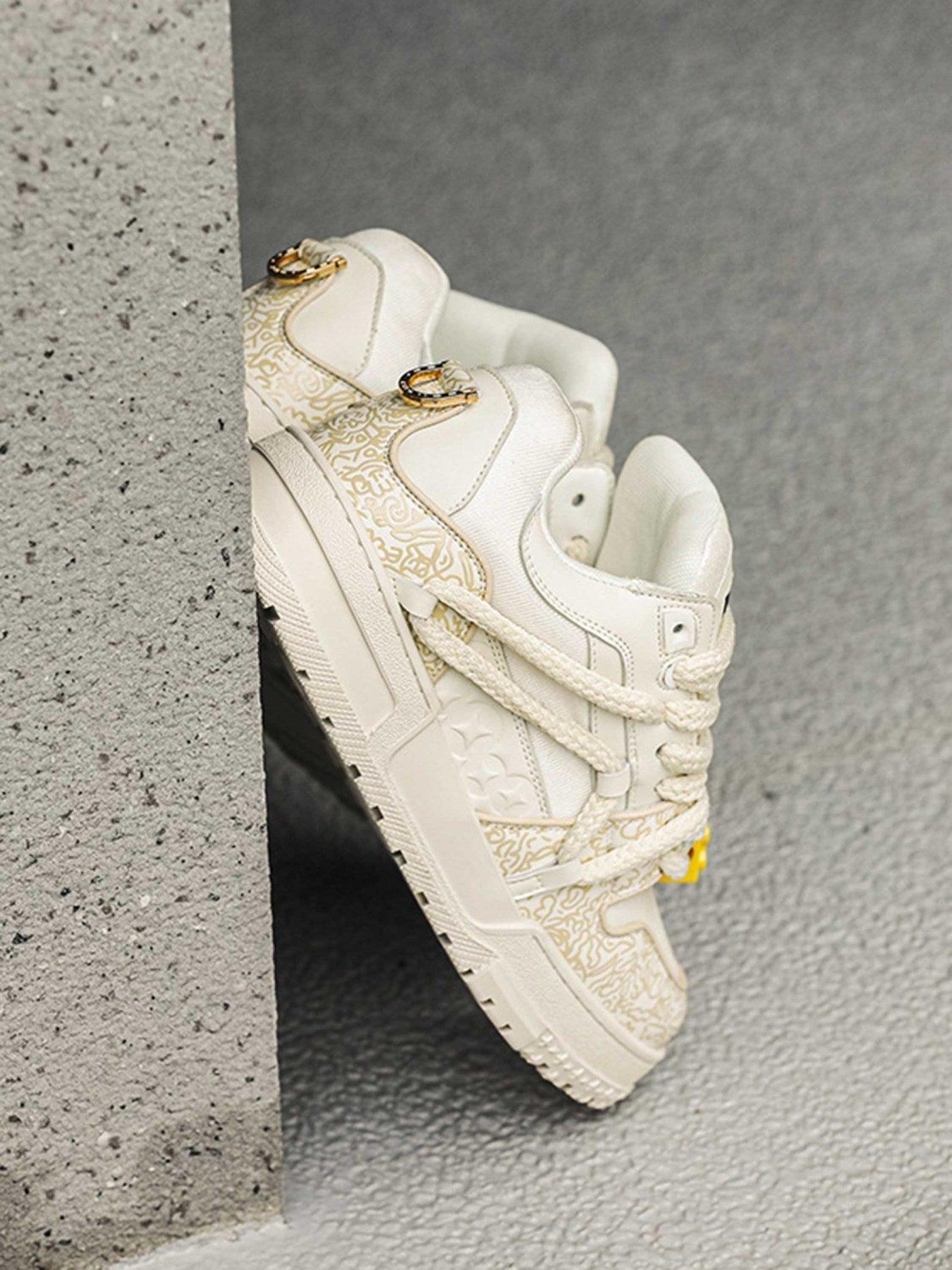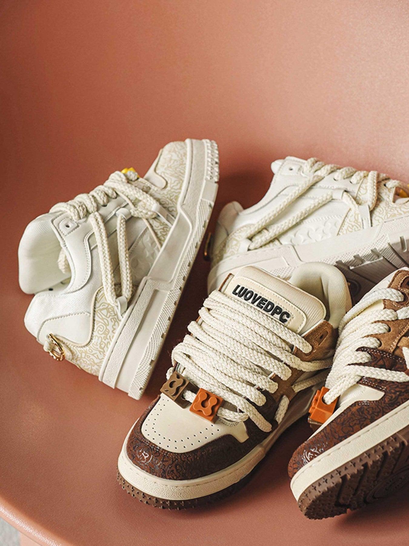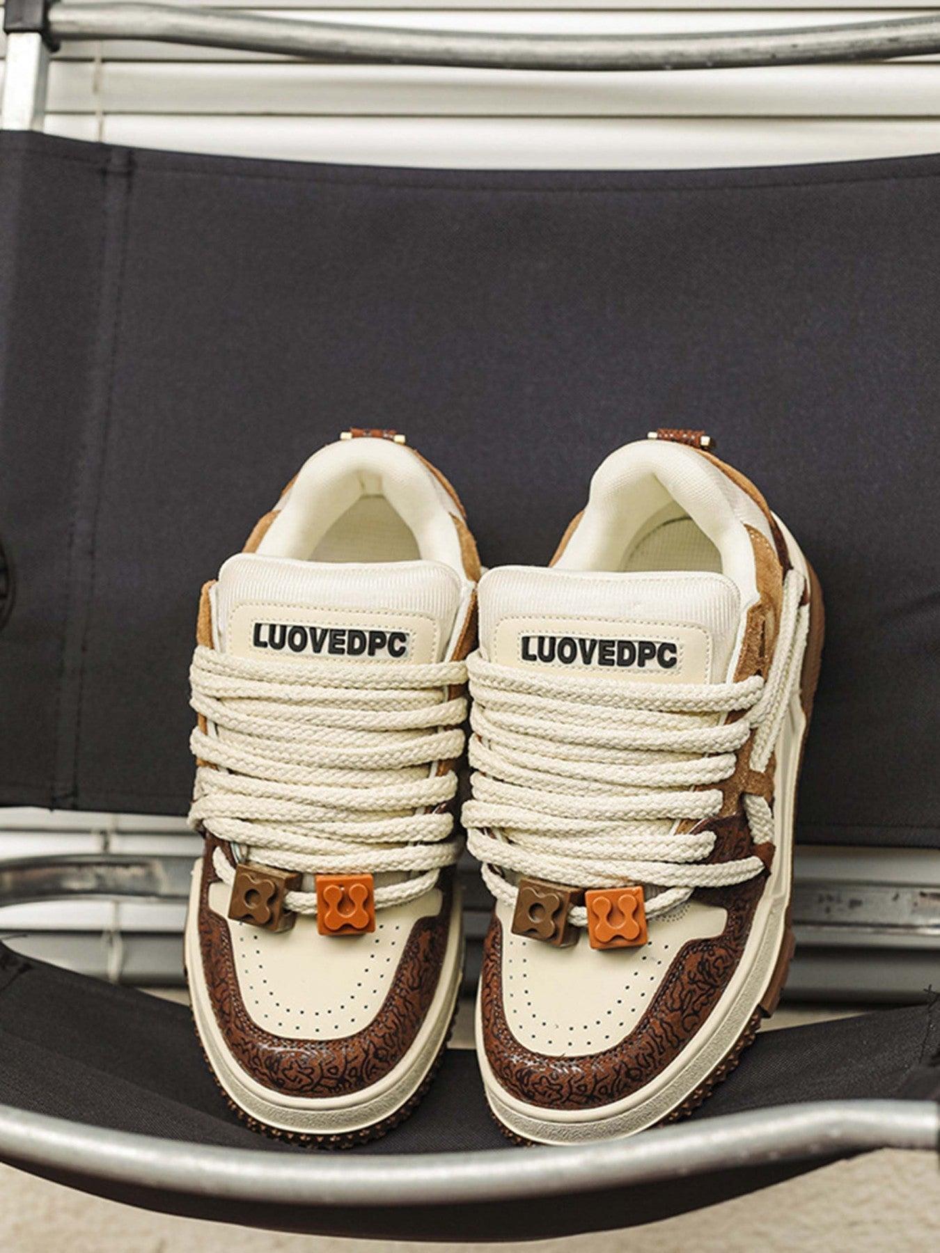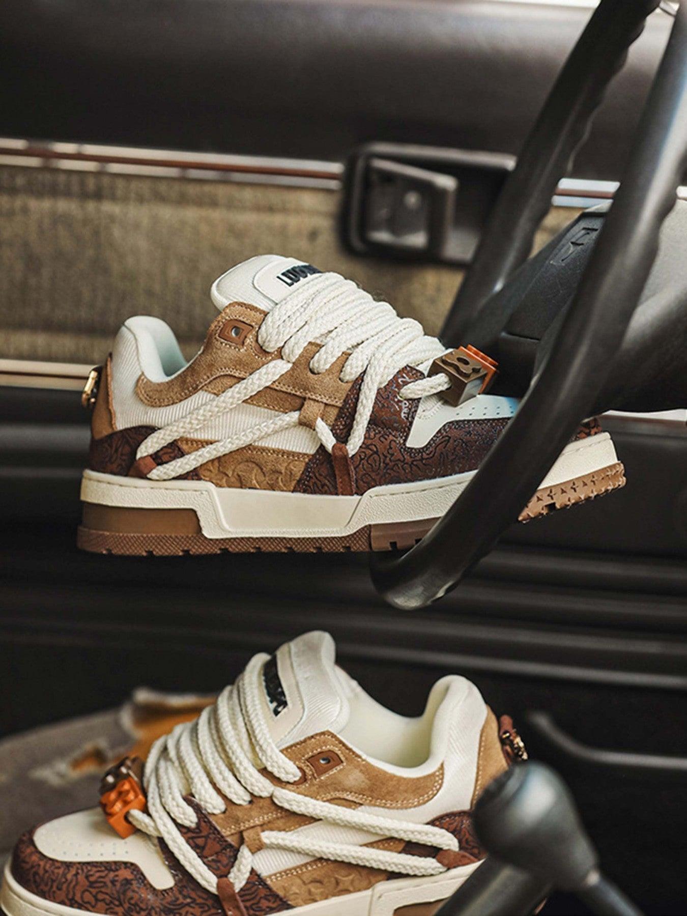 Defy the ordinary with sneakers that embody the heartbeat of urban life, merging intricate textures and bold design elements. The rich, earthy hues of brown and white fuse seamlessly, offering a versatile palette that complements your y2k outfits effortlessly. With a fit that hugs your foot in all the right places, these kicks bring both style and comfort to the forefront, perfect for strutting through city streets or making a bold statement at any gathering. Available in sizes 36 through 44, they provide the perfect fit for every stride. Pair them with your favorite denim for a laid-back vibe or elevate your streetwear fashion game with tailored trousers. Lace up and step out with confidence.