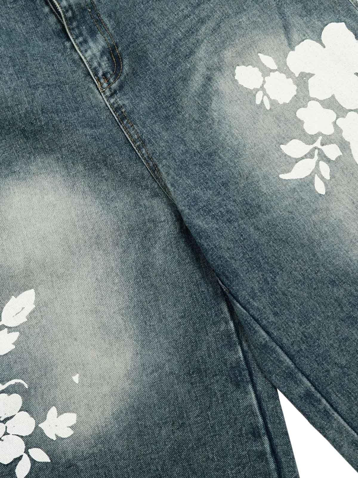 Turn heads with these blue denim shorts, where urban grit meets floral finesse. The bold white floral patterns pop against the deep blue, creating a striking contrast that redefines summer style. Crafted for comfort and edge, these shorts offer a relaxed fit available in sizes S, M, L, and XL, making them perfect for any summer fashion inspo. Pair them with your favorite sneakers or a slick jacket to own the streets with confidence. Gear up for the season and let your style talk the talk.