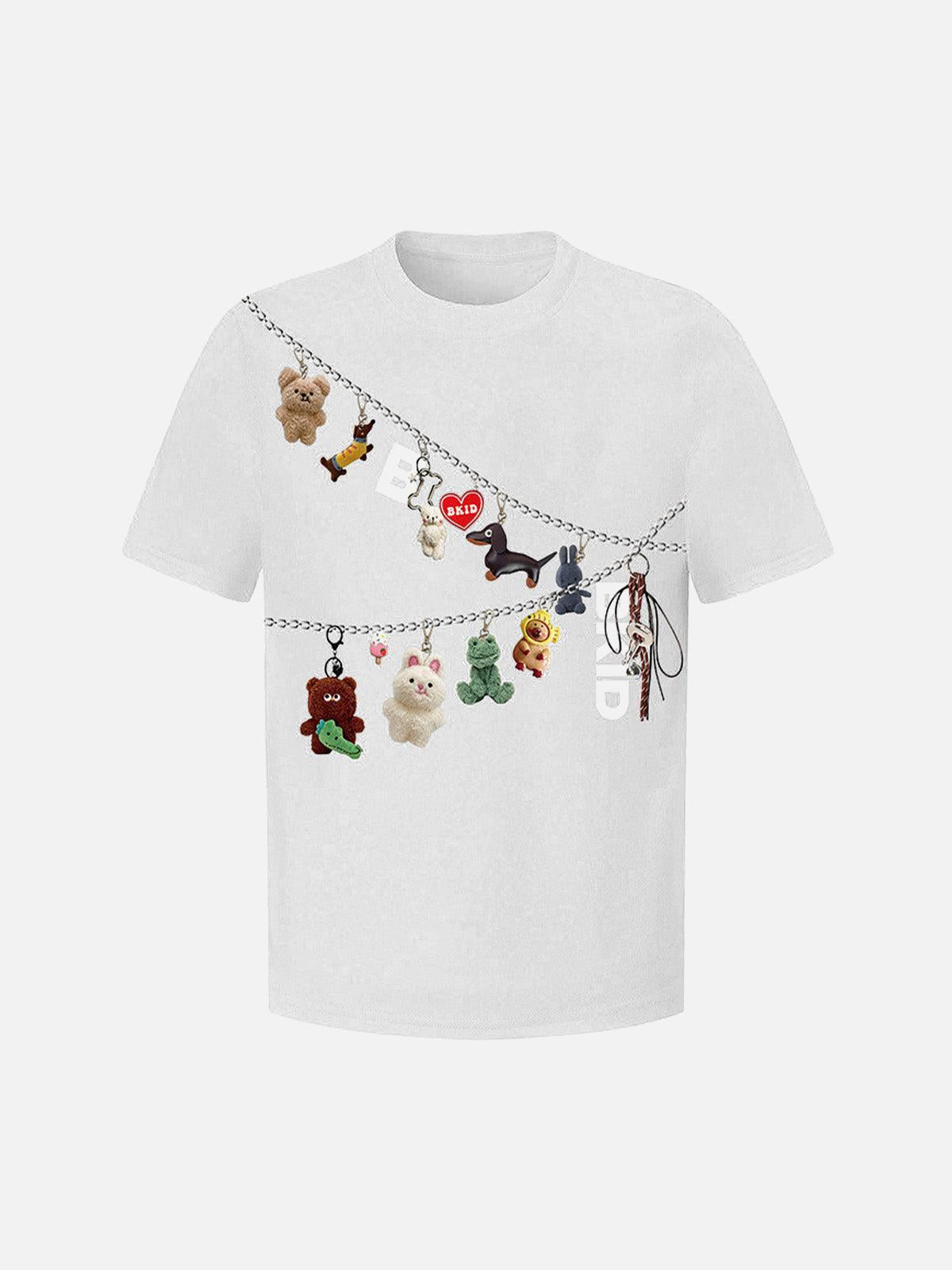 Dare to redefine summer style with this bold tee, flaunting an edgy chain design adorned with playful plush characters that bring texture and attitude to your look. Available in sleek black, vibrant blue, and classic gray, this shirt caters to your mood and the occasion, whether you’re rocking a medium, large, or extra-large fit. The comfortable fabric ensures you stay cool and confident, perfect for pairing with your go-to jeans or shorts for that effortless street vibe. Embrace the urban jungle and let your outfit do the talking.