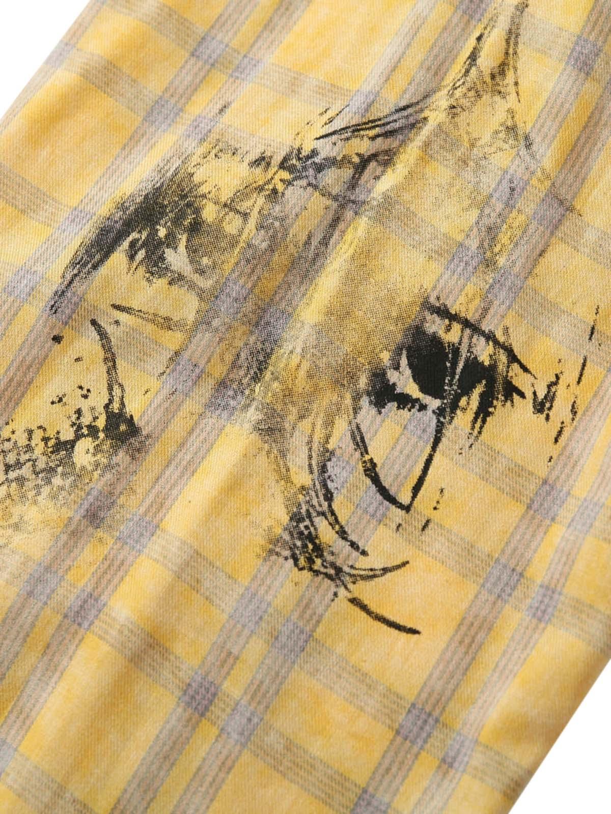 Break boundaries with this striking yellow plaid shirt that merges bold graphics and edgy text overlays, perfect for those who dare to stand out. Its vibrant color palette and unique patchwork scream urban sophistication, while the relaxed fit offers all-day comfort and effortless style. Available in versatile sizes from M to 2XL, this piece is your new go-to for crafting unforgettable y2k outfits. Pair it with distressed jeans and sneakers for the ultimate streetwear fashion moment. Ready to elevate your closet?