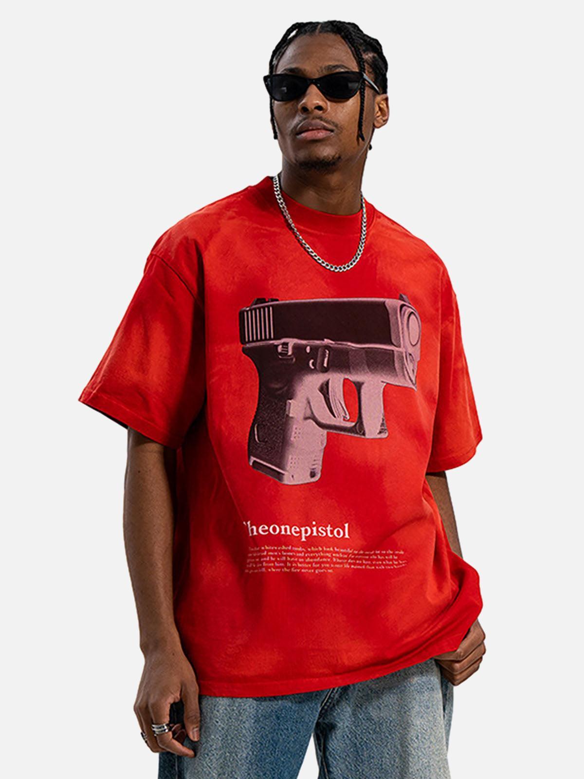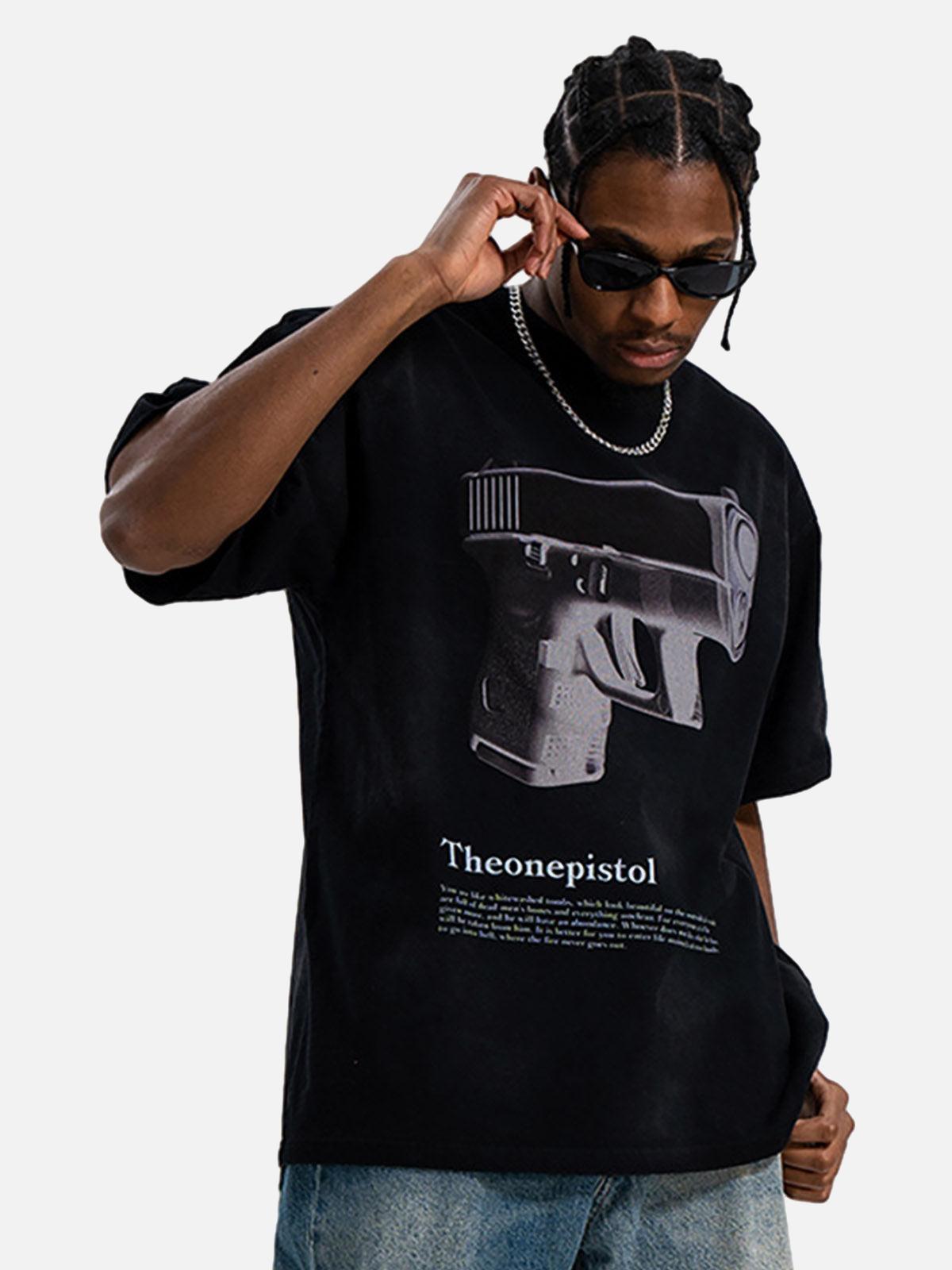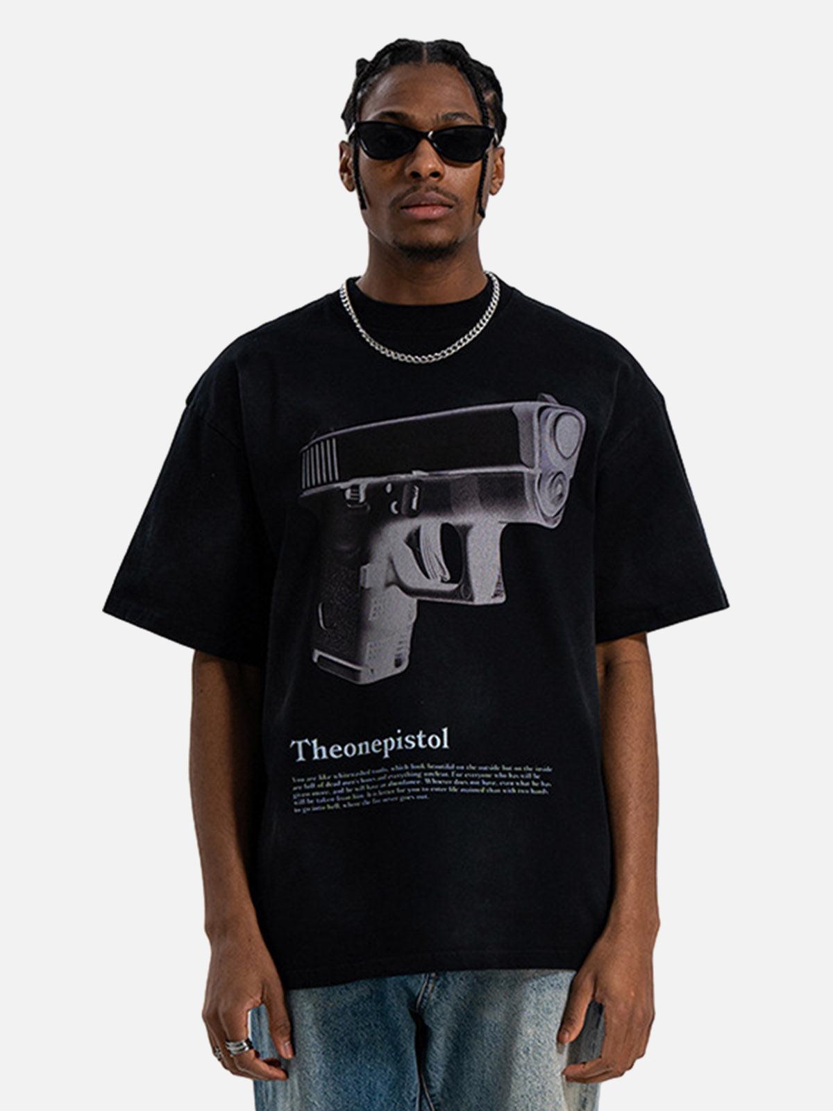 Bold Urban Graphic Gun Print T-shirt: Perfect Concert Outfit Choice High-quality product featuring concert outfit ideas, country concert outfit, outfit inspo and more. Modern design that fits the latest trends. Premium materials ensure durability and comfort. Order now for special offers! Product designed with attention to every detail. Suitable for all occasions and personal styles.