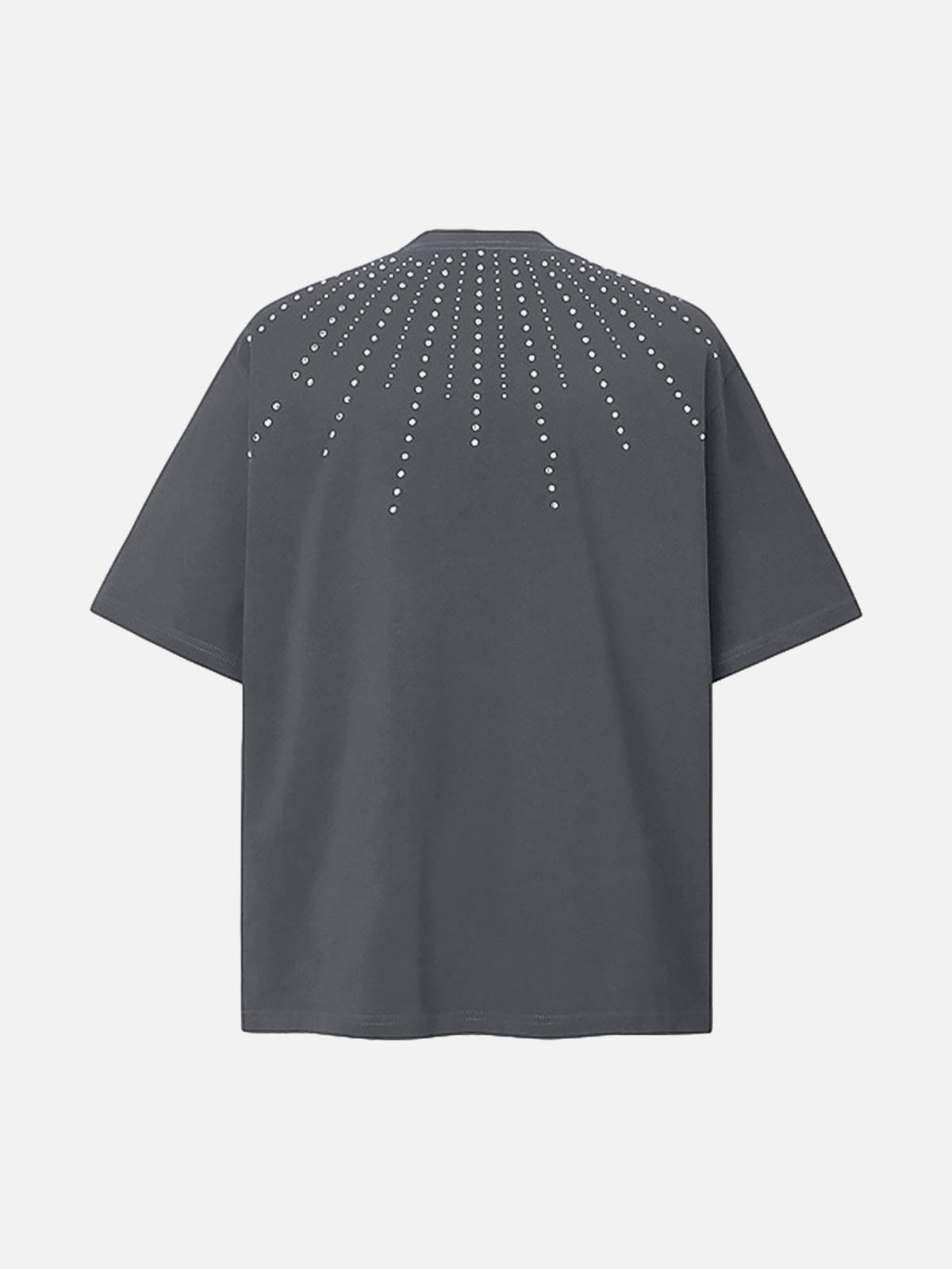 Ignite your wardrobe with a t-shirt that radiates urban flair, where bold studded lines cascade from the shoulders like a city skyline at dusk. The deep black hue makes this piece versatile, while the subtle dark gray accents add a touch of mystery to your summer outfit. Designed for a relaxed fit, it’s available in sizes M, L, XL, and 2XL, ensuring you find your perfect streetwear vibe. Pair with distressed denim or your favorite sneakers for an effortlessly edgy look. Own your summer style with confidence and make this standout piece yours today.