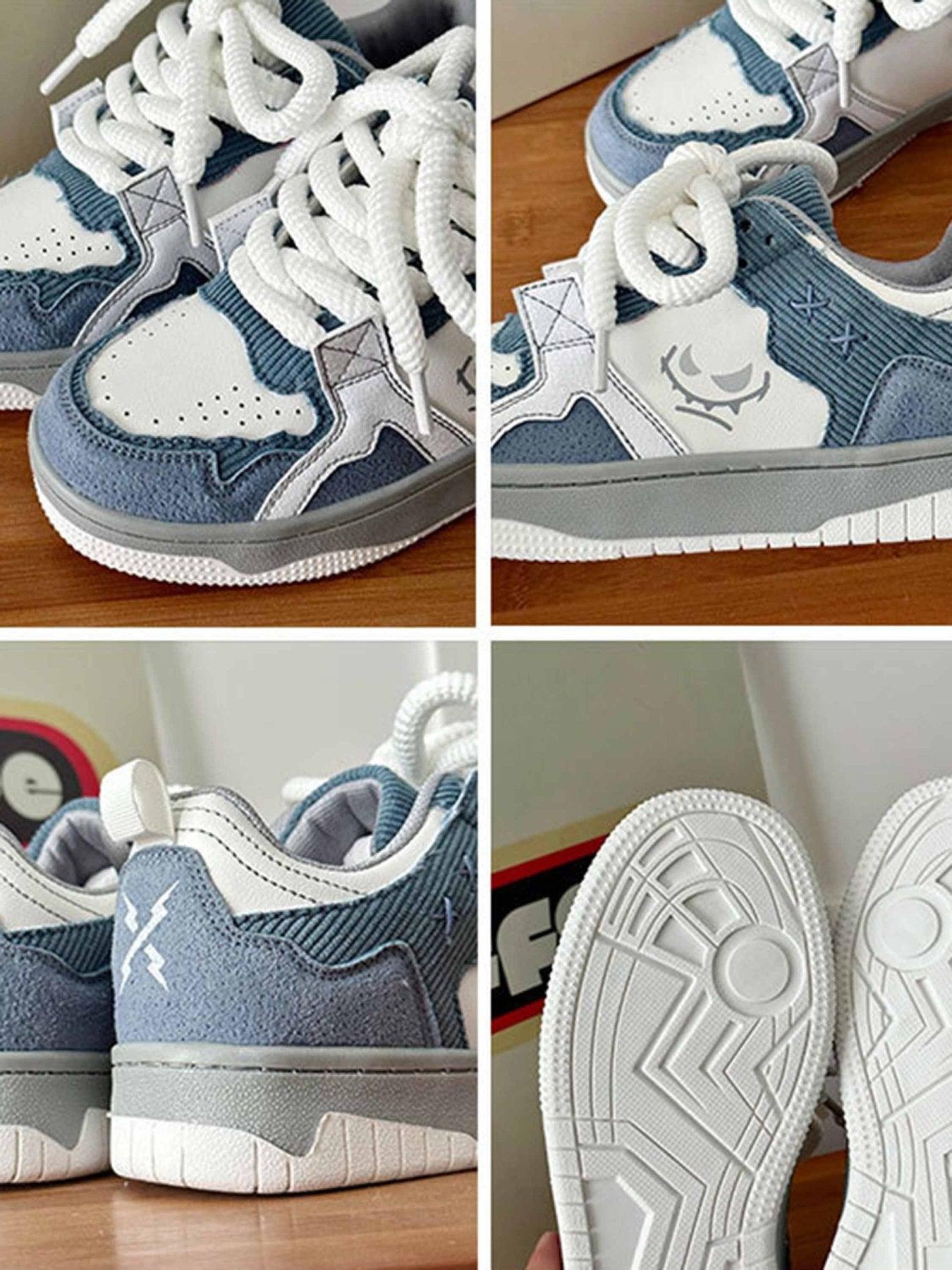 Dive into the future of streetwear fashion with sneakers that redefine cool. These kicks boast a striking blue design, seamlessly blending smooth textures with bold, white accents that catch the eye. The chunky, rope-style laces and intricate graphics add a touch of urban flair, while the cushioned sole ensures comfort with every step. Whether you’re strutting through city streets or pairing them with your favorite y2k outfits, these sneakers offer a fit for everyone, from sizes 36 to 44. Ready to elevate your look? Lace up and lead the style revolution.