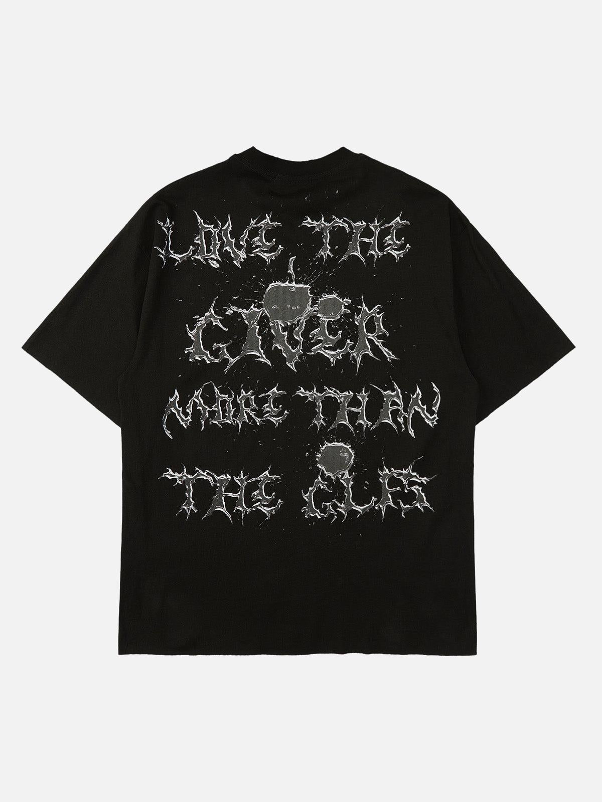 Break the mold with this standout tee, featuring a bold graphic design that commands attention. The distressed black fabric is your canvas for urban expression, while the prominent peace symbol and striking typography bring a message of unity and style. Available in versatile sizes from M to 2XL, this piece is perfect for pairing with your favorite summer outfit. Whether you’re hitting the streets or chilling with friends, let this shirt be your go-to for making a confident impression. Grab yours now and redefine your summer fashion story.