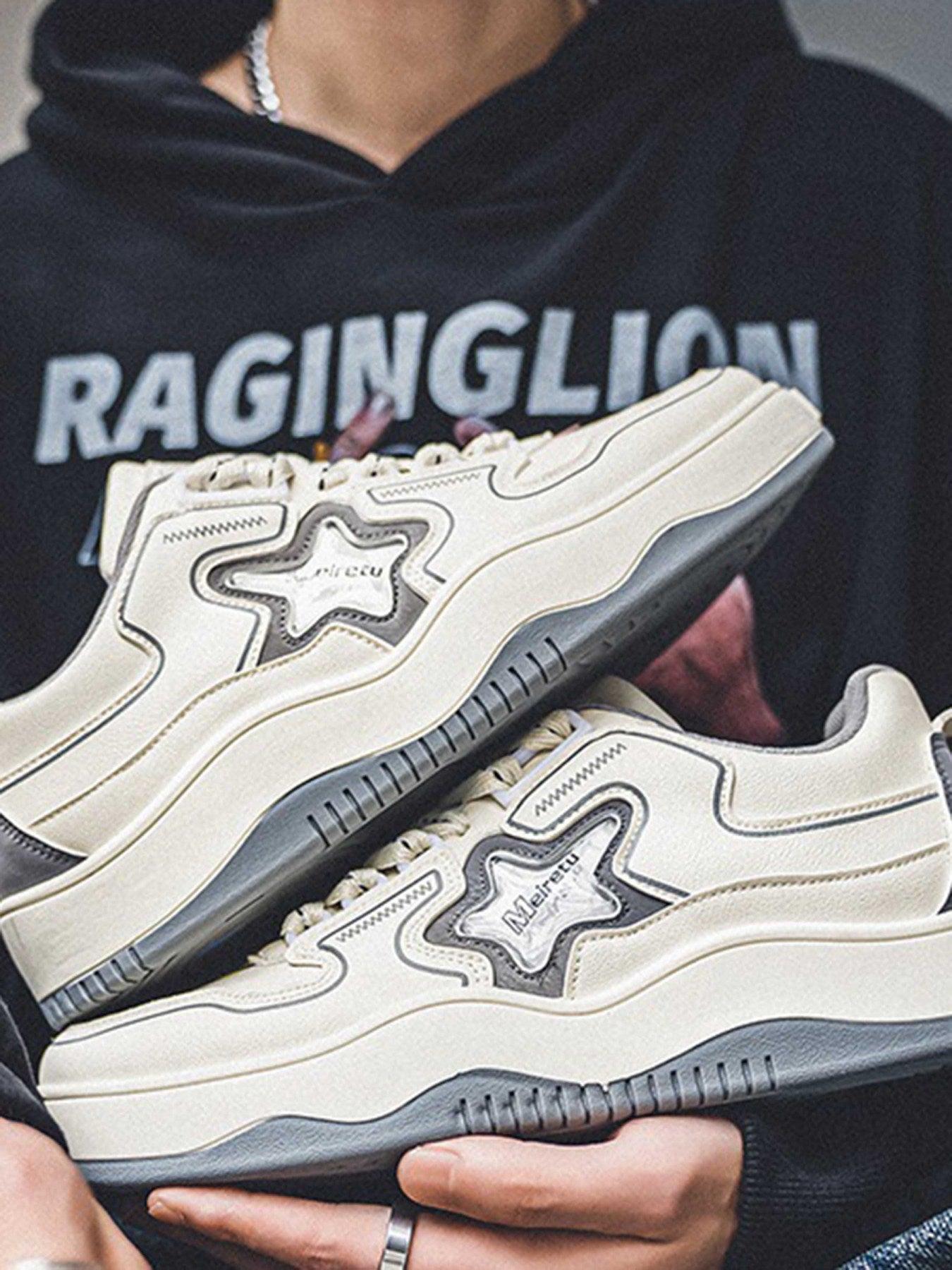 Step into the future of streetwear fashion with these dynamic kicks, where bold black and gray accents collide with a striking star design for an electrifying look. The textured leather offers a sleek contrast to the smooth rubber sole, ensuring both style and comfort for every adventure you take on. Available in sizes 39 to 44, these sneakers mold effortlessly to your feet, making them the perfect companion for any urban exploration. Whether you’re pairing them with your favorite y2k outfits or seeking fresh outfit inspo, these sneakers are your go-to for turning heads. Ready to redefine your sneaker game?