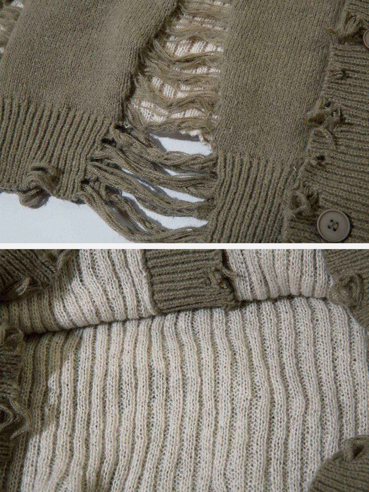 Embrace the raw edge of urban style with this distressed cardigan, where bold texture meets gritty elegance. Its rugged, torn detailing creates a standout look that vibes perfectly with streetwear fashion. Available in a versatile green or sleek black, you can choose the tone that suits your mood. Designed to fit comfortably from XS to XL, this piece layers effortlessly over your favorite Y2K outfits, adding an authentic touch to any ensemble. Pair it with ripped jeans for a complete urban outfit inspo, or throw it over a classic tee for an effortlessly cool vibe. Ready to redefine your wardrobe?