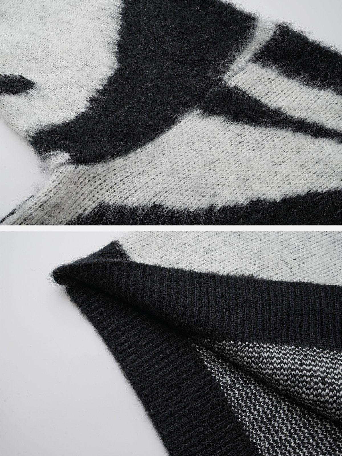 When your style craves something bold yet effortlessly cool, this black and white sweater steps up with its striking abstract pattern and plush texture. The interplay between the deep black and soft white hues creates a dynamic visual that works seamlessly for any urban ensemble. Available in sizes from S to XL, its relaxed fit ensures comfort without compromising on style, making it a perfect piece for layering over your favorite y2k outfits. Pair it with distressed denim for a casual day out or sleek trousers for a night on the town. Dive into streetwear fashion with confidence.
