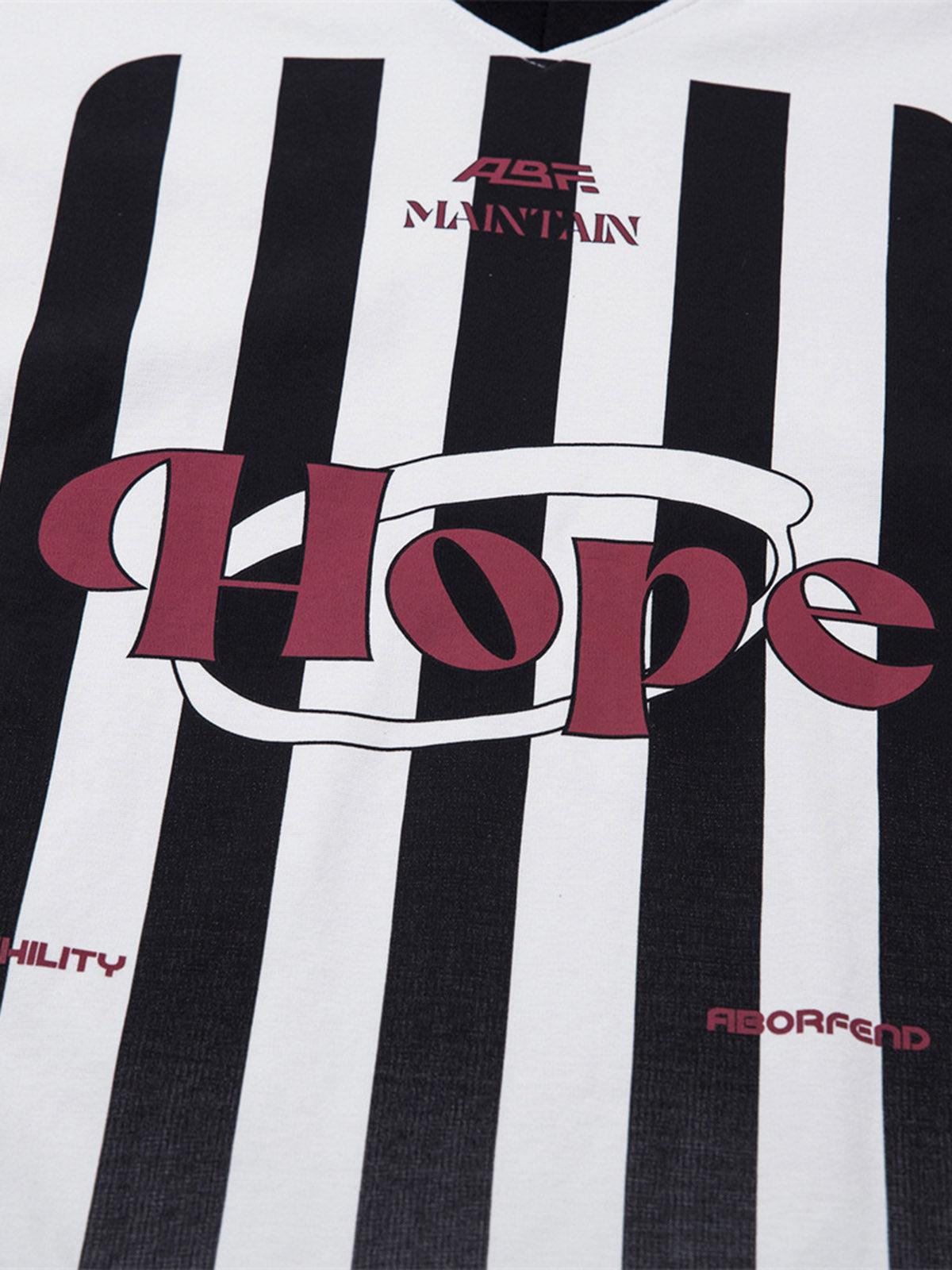 Break the norm and own the street with this bold, black and white striped jersey that screams urban edge and confidence. Its sleek vertical lines amplify your silhouette, while the striking ‘Hope’ graphic in deep red adds a punch of attitude. Available in sizes ranging from S to XL, this piece offers a relaxed fit that drapes effortlessly, making it perfect for layering over your favorite tee or standing alone as a statement. Whether you’re channeling Y2K vibes or seeking fresh outfit ideas, this jersey is your go-to for streetwear fashion that doesn’t hold back. Gear up and redefine your look today.