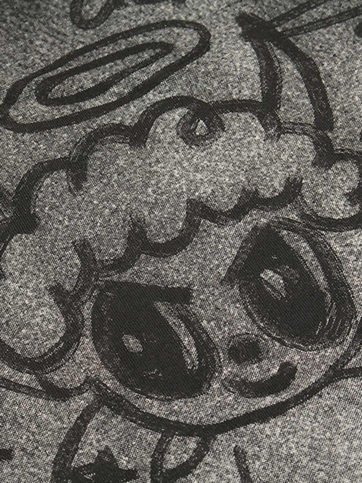 Embrace the edgy allure of urban streetwear with this tee, where playful graphics meet bold attitudes, perfect for making your mark this summer. Its striking design features a mischievous character surrounded by musical notes and celestial elements, adding a dynamic vibe to your look. Available in shades of gray, red, and purple, this piece offers versatility with a relaxed fit in medium, large, and extra-large sizes. The soft texture and vibrant print make it an ideal choice for layering or standing out on its own. Gear up for a day in the city and let this tee be your ultimate summer fashion inspo.