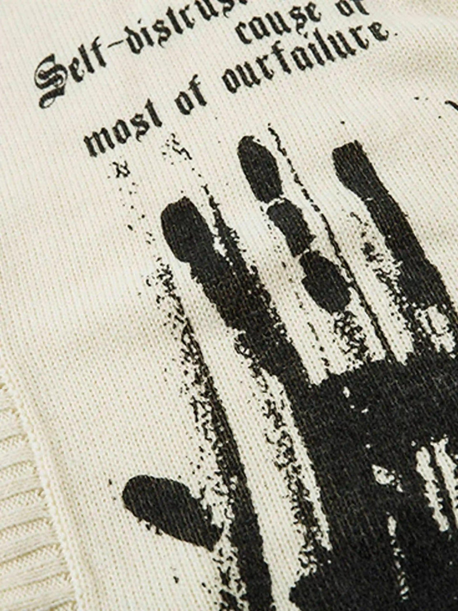 Embrace the art of rebellion with this audacious cardigan that merges gritty graphics with cozy vibes, perfect for those who dare to redefine streetwear fashion. The raw, handprint design splashed across a soft apricot fabric infuses an unmistakable urban edge, while the relaxed fit ensures comfort in every move. Whether you’re layering over a simple tee or pairing it with your favorite jeans, this piece invites endless outfit ideas. Available in sizes S through XL, and also in a sleek black for those who prefer a darker tone, this statement piece is your ticket to standout style. Grab yours and let your wardrobe speak volumes.