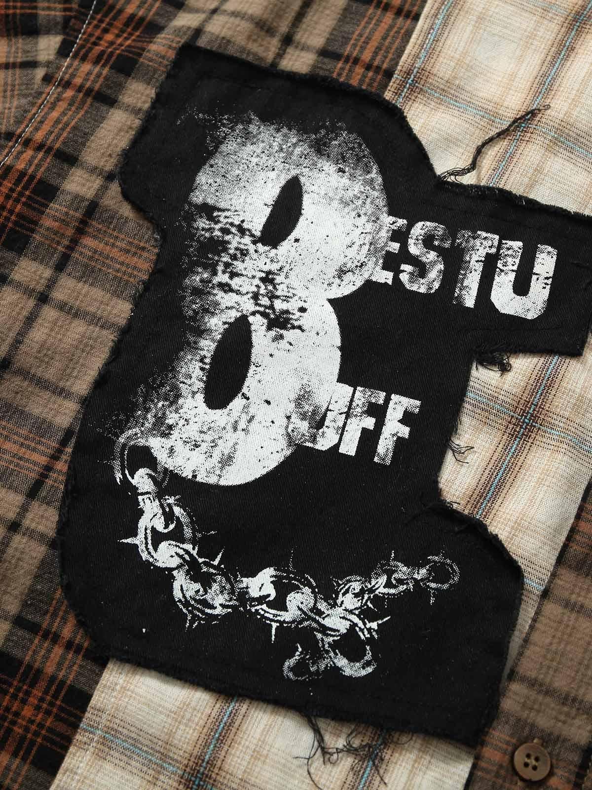 Challenge the ordinary with this rebellious mix of bold patches and eclectic plaid, a fusion of attitude and creativity that screams streetwear fashion. The rich brown palette is a nod to retro vibes, while the edgy graphics add a modern twist, making it a perfect fit for those who dare to stand out in sizes ranging from M to 2XL. The relaxed fit and breathable texture ensure you’re as comfortable as you are stylish, whether you’re hitting the city streets or curating y2k outfits. Own the urban jungle and let your wardrobe do the talking.