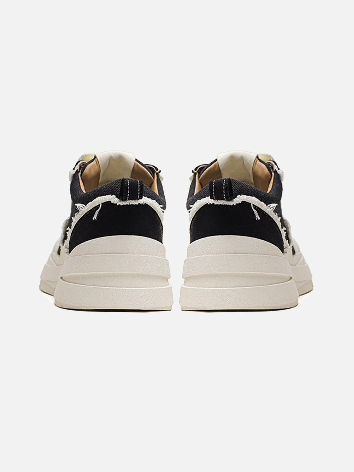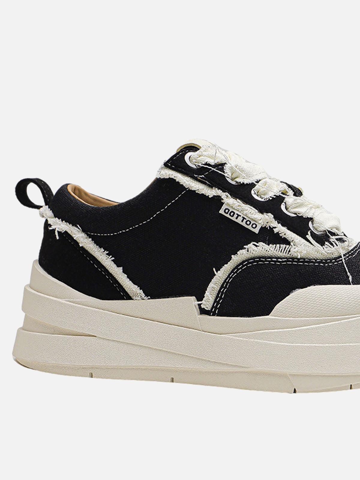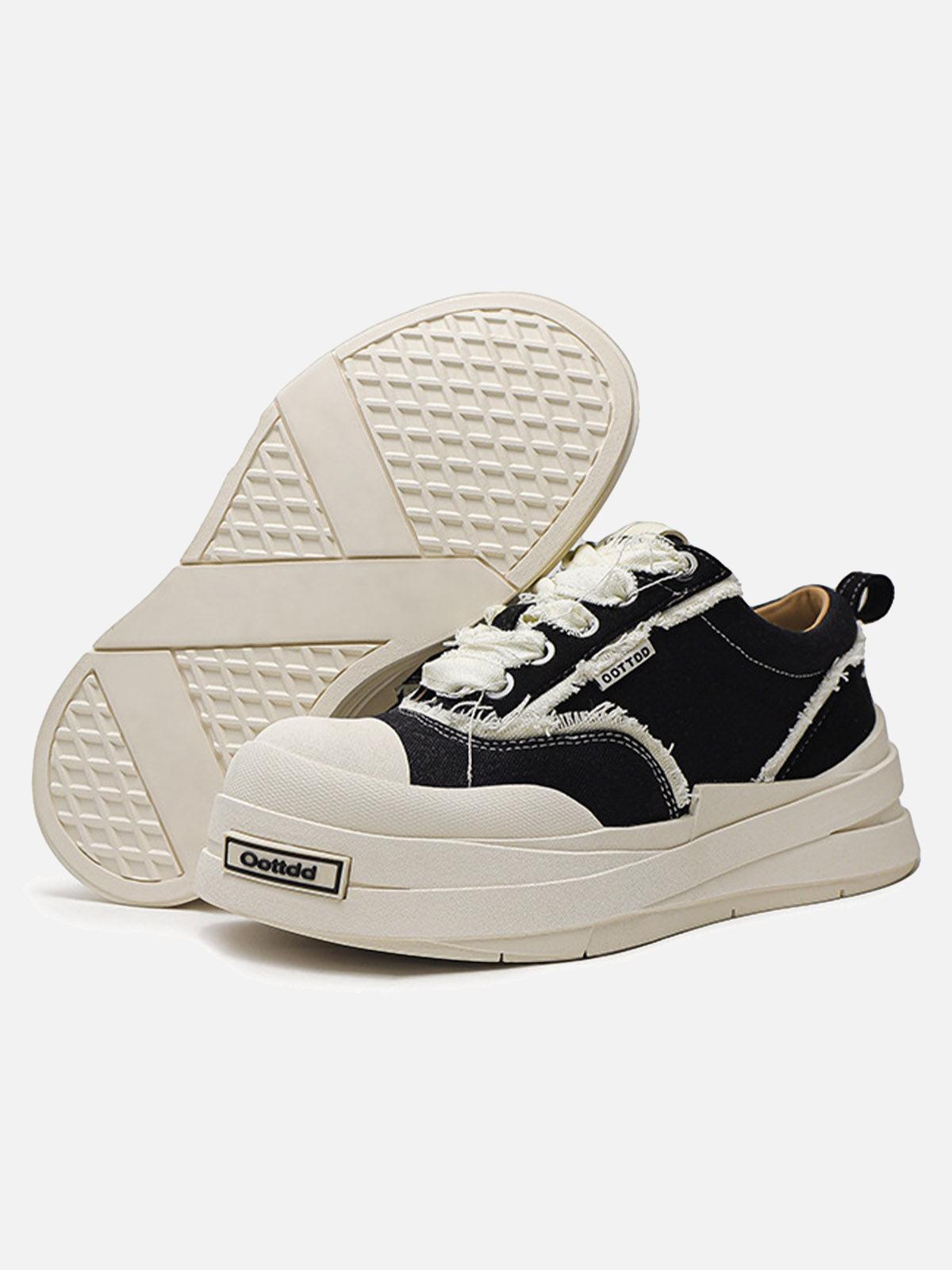 Command the streets with TALISHKO Raggedy Round Toe Sneakers, featuring a durable canvas upper and soft leather lining for comfort and style. Chunky white rubber soles provide both height and an urban edge, while the distressed canvas design and embroidered heel branding ensure you stand out. Tailored for casual streetwear enthusiasts, these sneakers promise all-day wear without fatigue.