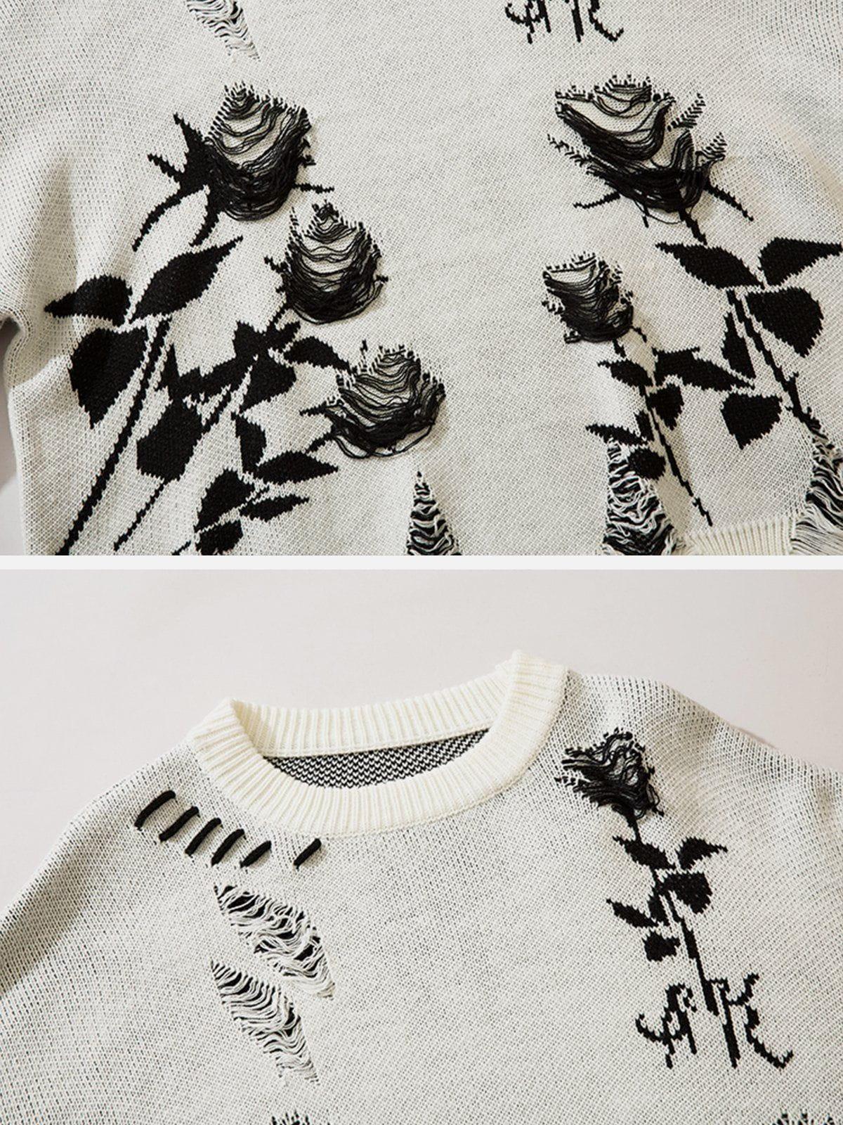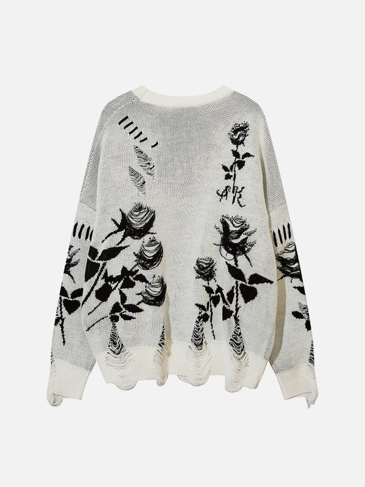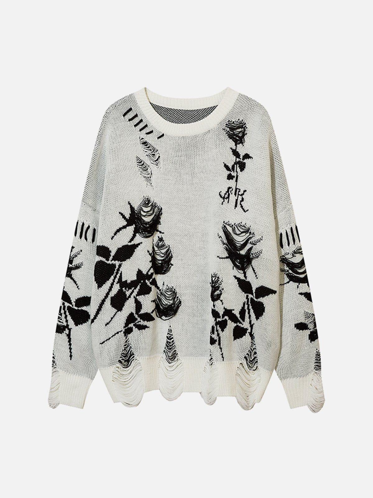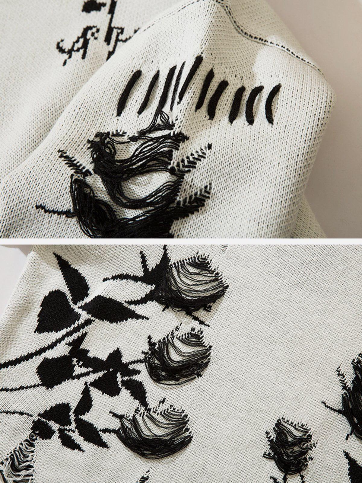 Embrace the art of edgy elegance with this sweater, where bold monochrome roses burst against a rich black canvas, creating a striking visual impact. The distressed texture adds a rebellious twist, perfect for layering over your favorite y2k outfits, while the relaxed fit ensures effortless comfort from S to XL. Whether you’re stepping into the urban jungle or chilling with friends, this piece offers versatile outfit ideas, effortlessly blending into any streetwear fashion scene. Elevate your wardrobe game with this statement piece and redefine your style today.
