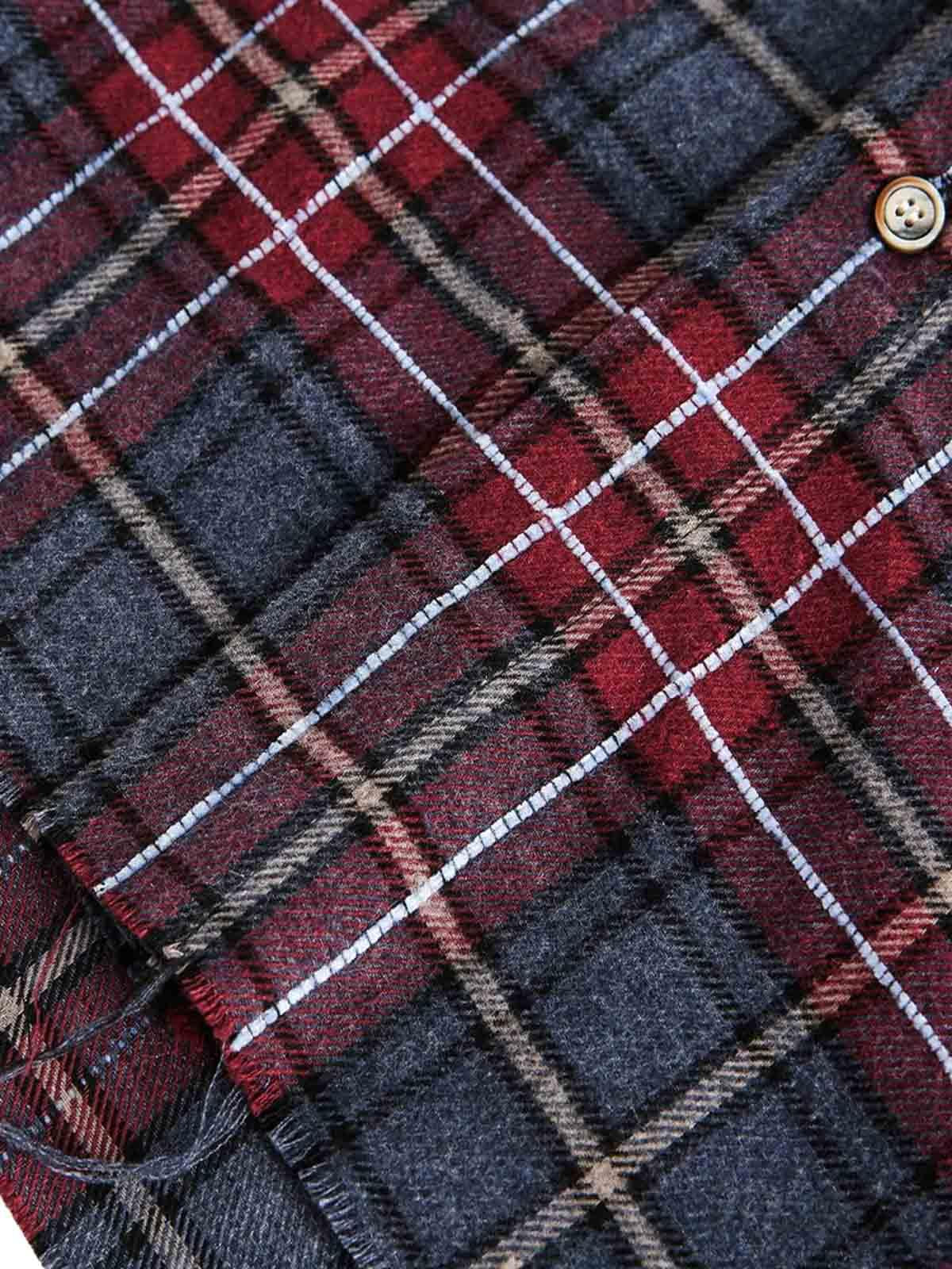 This plaid shirt breaks boundaries with its bold burgundy and navy checkered pattern, blending effortlessly into any urban wardrobe. The textured fabric and relaxed fit offer a laid-back vibe, perfect for layering over a tee or under a jacket. Available in sizes from M to 2XL, it’s designed for those who appreciate comfort without sacrificing style. Pair this versatile piece with your favorite jeans and sneakers for a look that’s both effortless and edgy. Ready to redefine your streetwear fashion game?