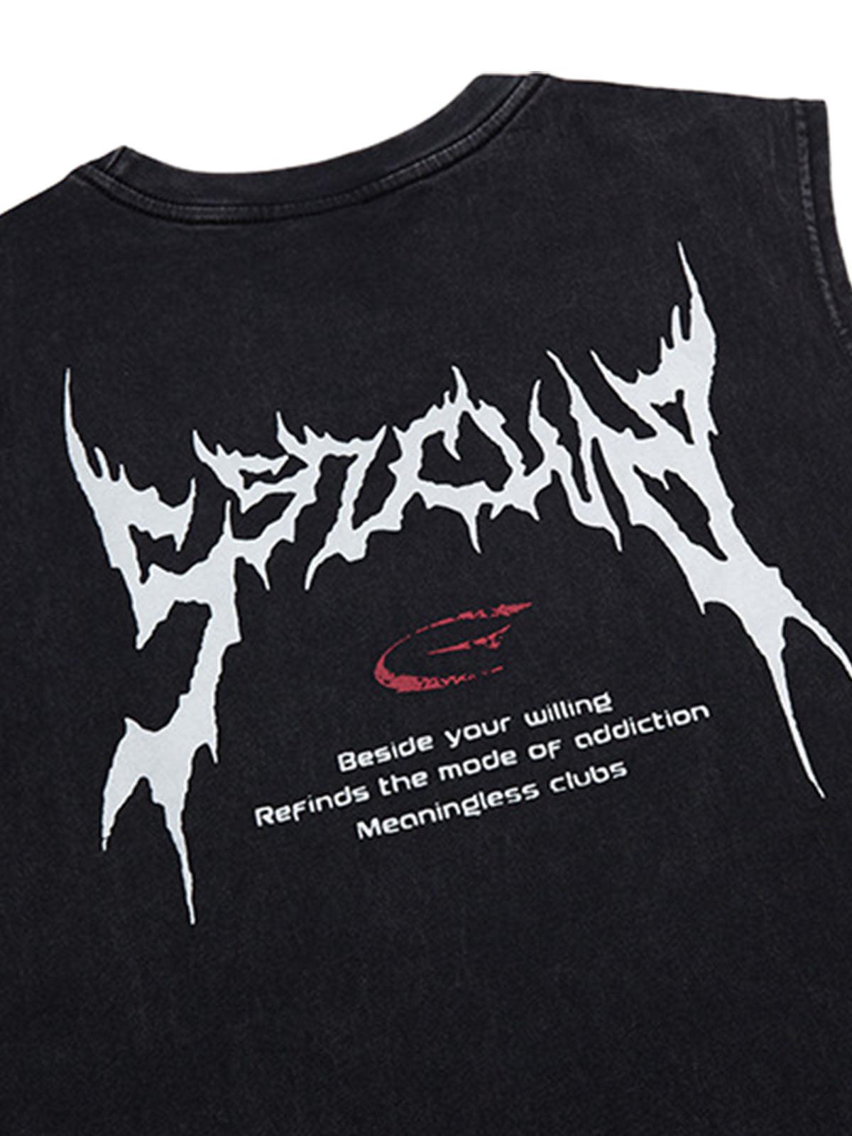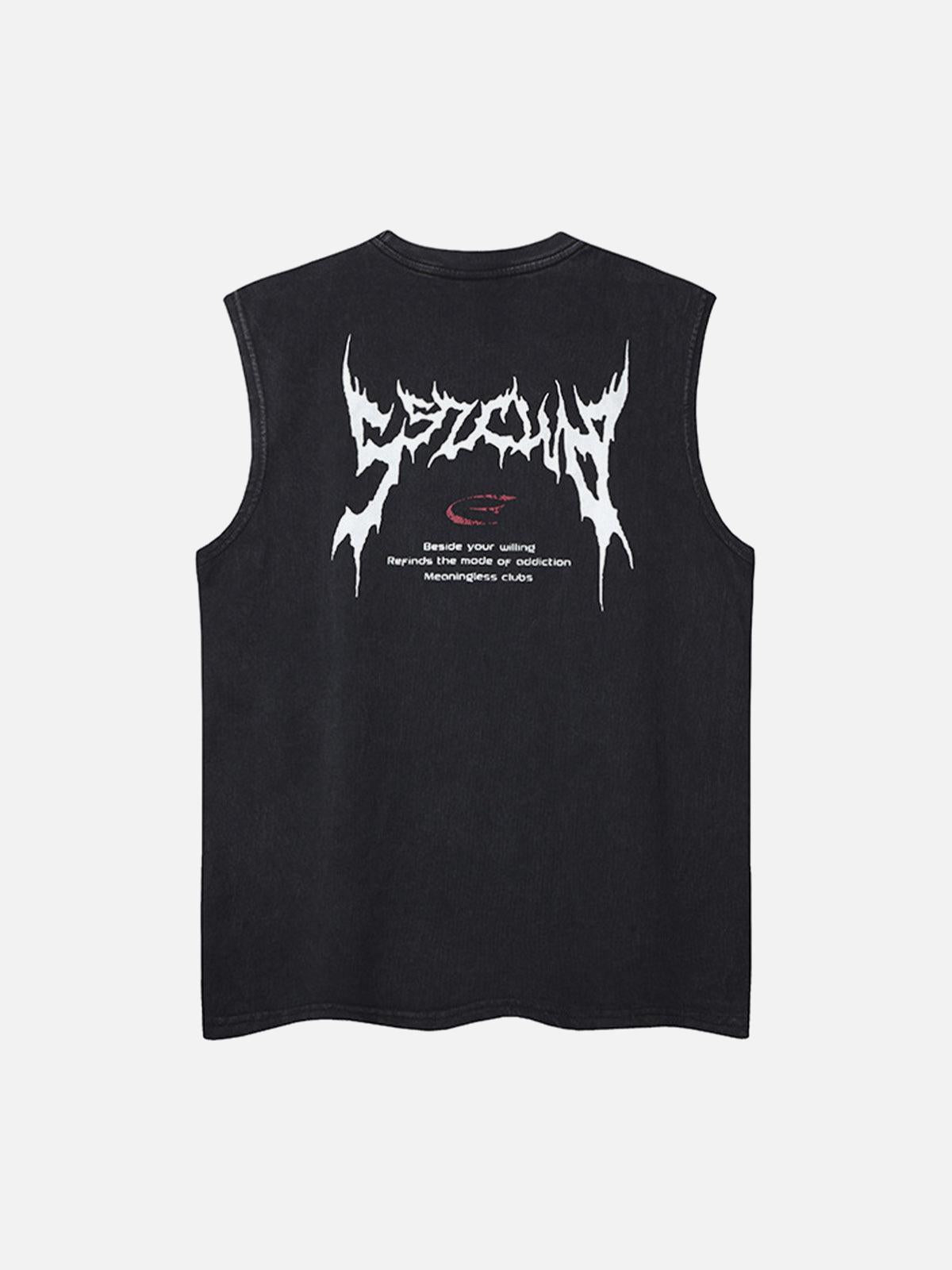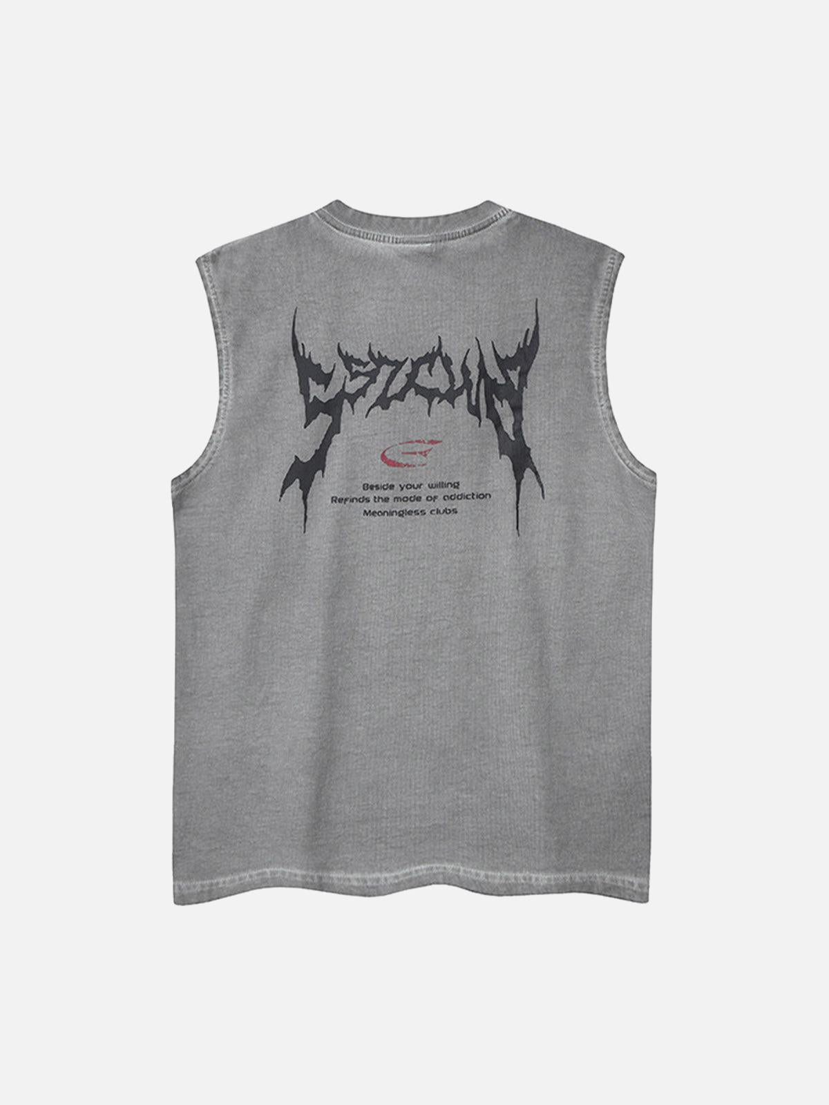 Dare to redefine your style with this sleeveless wonder that screams urban rebellion. The bold, graphic design sprawls across a rugged black canvas, offering a grunge-inspired vibe that pairs perfectly with your favorite ripped jeans or layered under a distressed jacket for those killer y2k outfits. Feel the comfortable fit in sizes from S to 2XL, whether you’re hitting the streets or chilling at a rooftop party. Available also in a sleek gray, this piece embraces the raw energy of streetwear fashion while giving you endless outfit ideas. Slip into this edgy essential and let your wardrobe do the talking.
