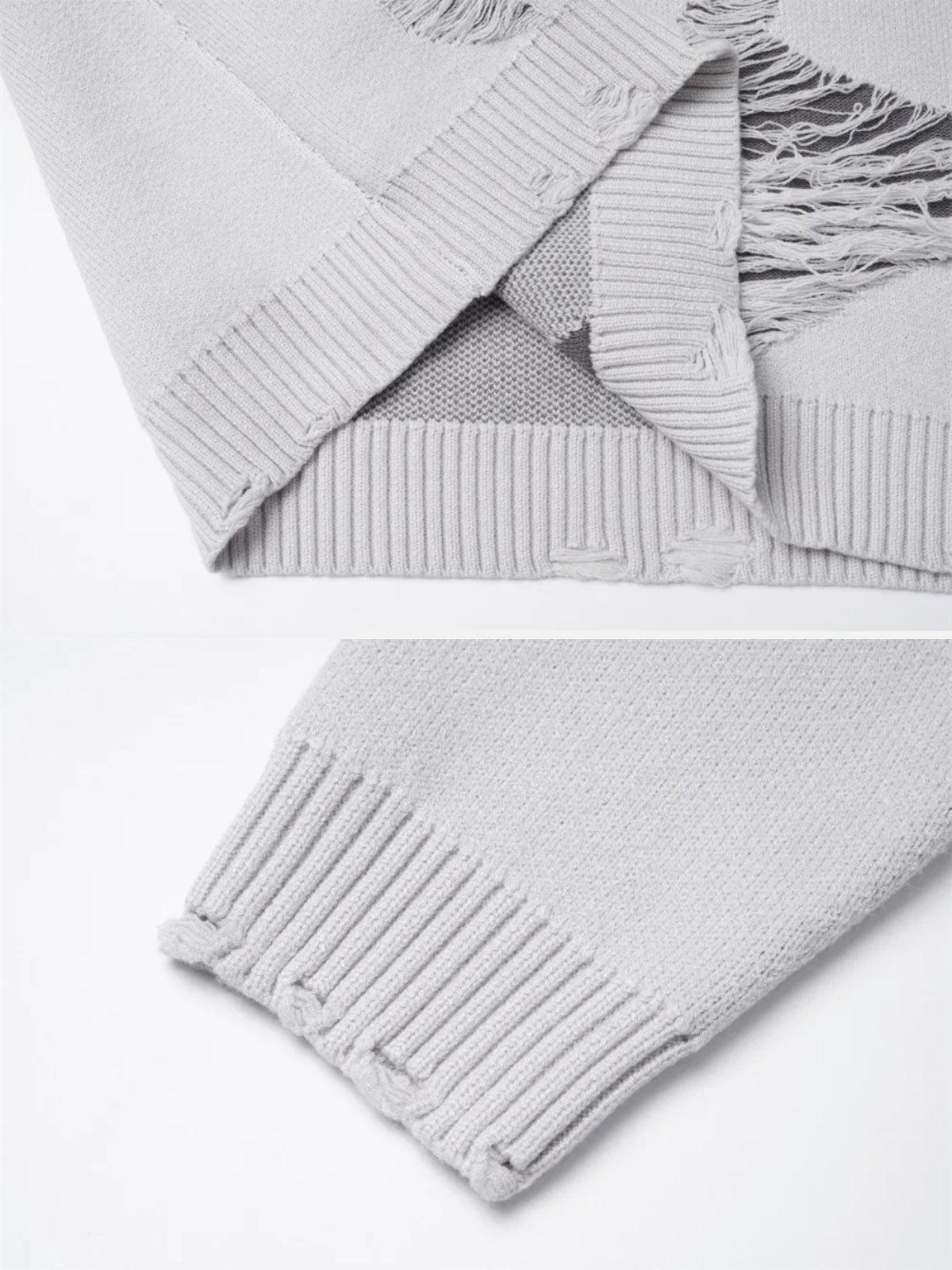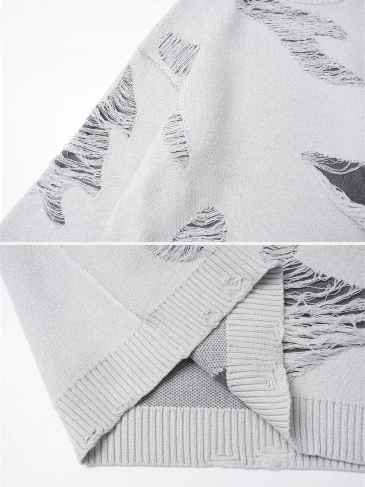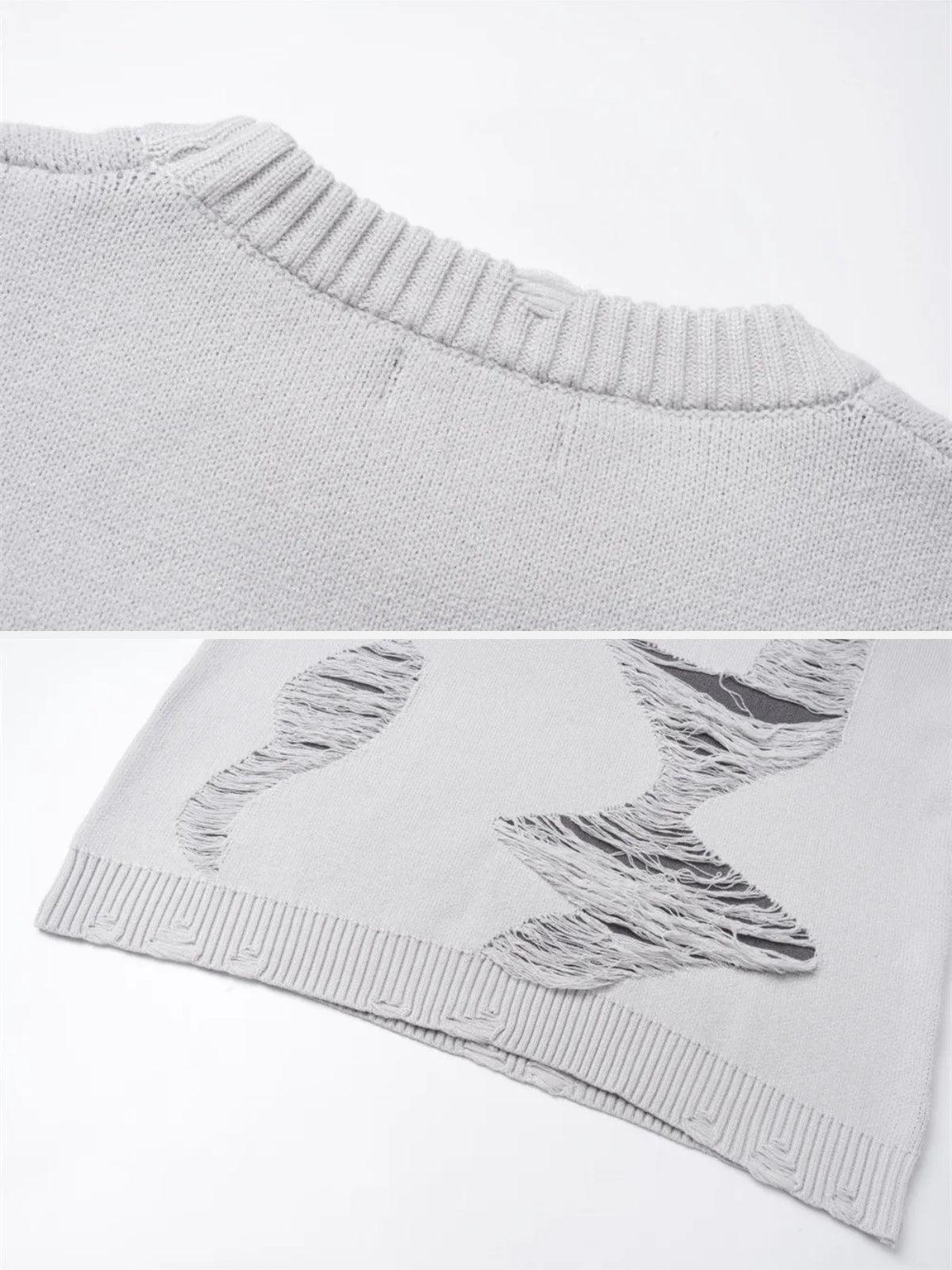 Dare to redefine streetwear fashion with this audacious piece, featuring a bold interplay of edgy cutouts and dynamic textures that scream urban rebellion. The distressed detailing in deep black or sleek gray creates a raw aesthetic, perfect for layering over your favorite basics. Available in sizes S to XL, its relaxed fit ensures comfort while keeping your look effortlessly cool. Whether you’re hitting the streets or crafting your next y2k outfit, this sweater is your go-to for instant outfit inspo. Grab yours now and let your style speak volumes.