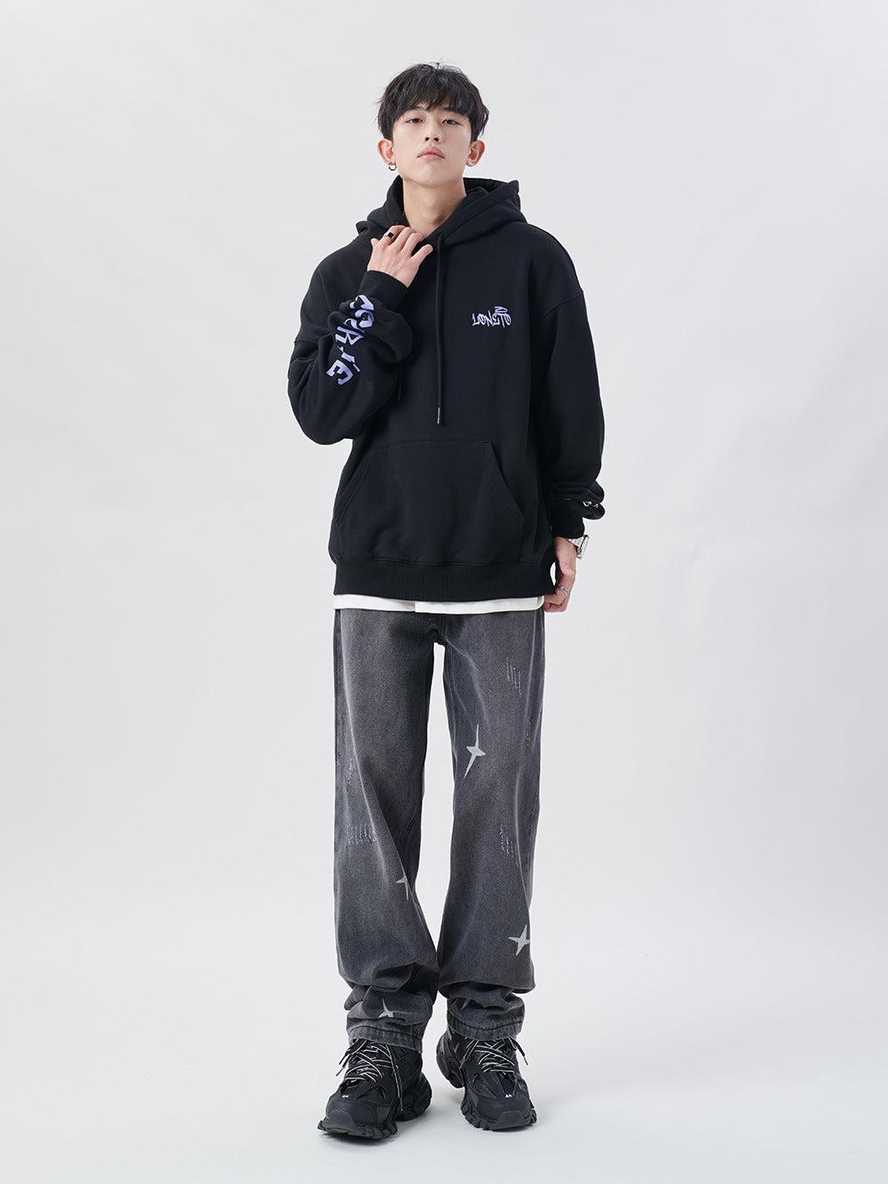Revamp your streetwear fashion game with these edgy jeans that blend a rugged vibe with modern flair. The dark wash is punctuated by striking white star patterns, creating an urban aesthetic that’s both bold and timeless. These jeans are designed to fit comfortably in sizes S, M, and L, making them a versatile choice for anyone looking to up their style game. Whether you’re pairing them with a sleek black tee or a vibrant blue hoodie, these jeans are your ticket to effortless outfit inspo. Take your street style to the next level with a look that’s uniquely yours.