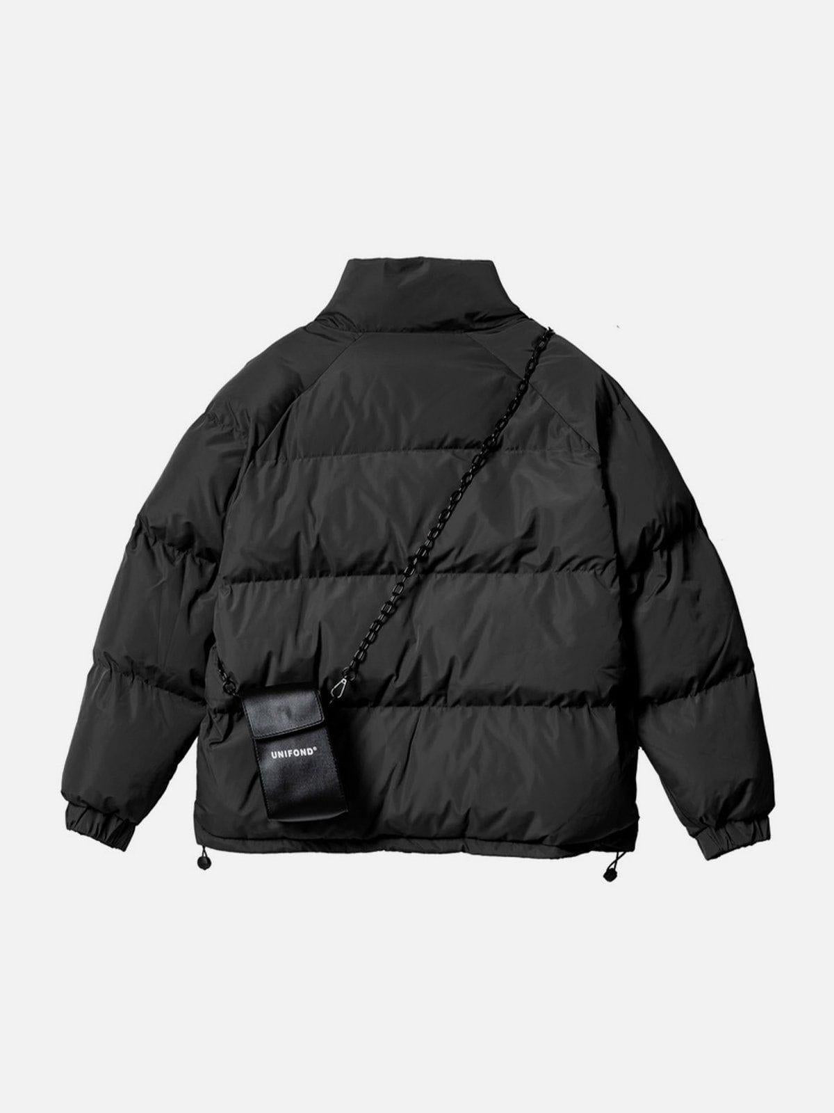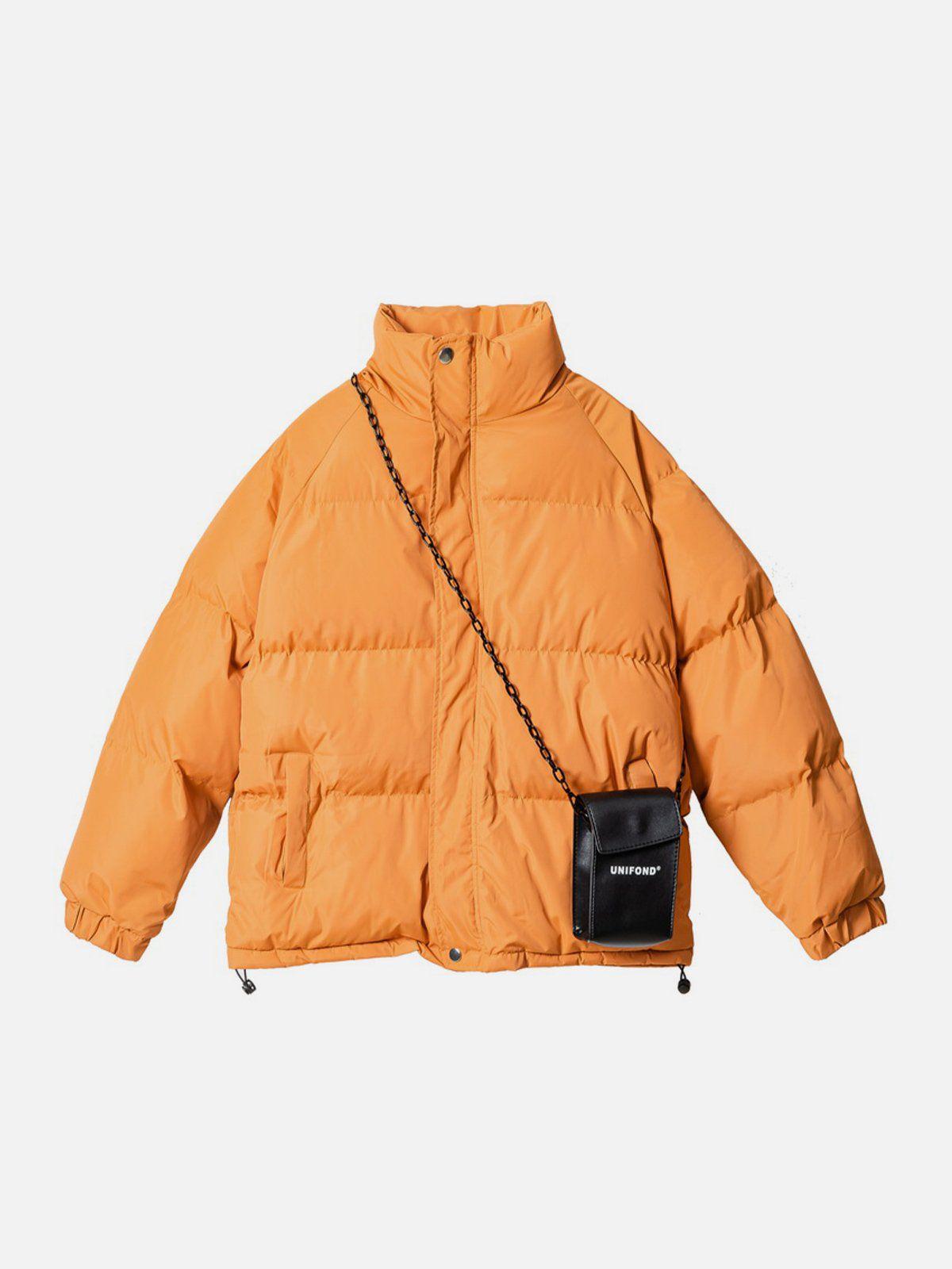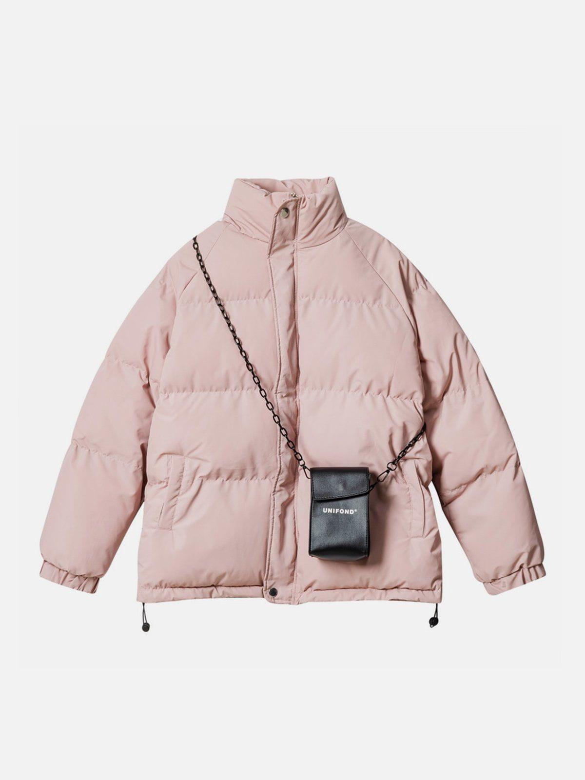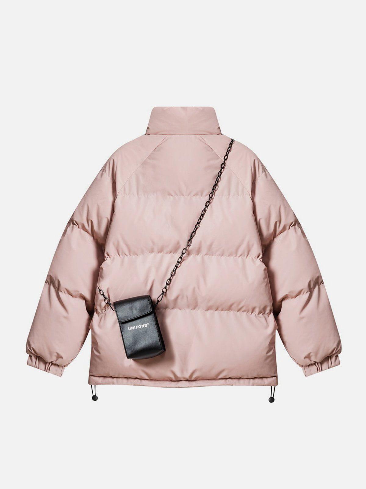 Embrace the urban chill with this sleek, oversized puffer that seamlessly fuses fashion-forward design with street-ready practicality. The clean apricot hue offers a versatile canvas for mixing and matching your y2k outfits, while the chain-detailed pouch adds a bold touch of utility. Available in sizes from S to XL, this jacket not only promises a perfect fit but also delivers on warmth and comfort with its plush texture and high collar. Whether you’re hitting the streets in pink, black, or orange, this piece effortlessly integrates into any outfit inspo you’re channeling. Elevate your streetwear fashion game by layering it over your favorite hoodie or tee for an effortlessly cool vibe.