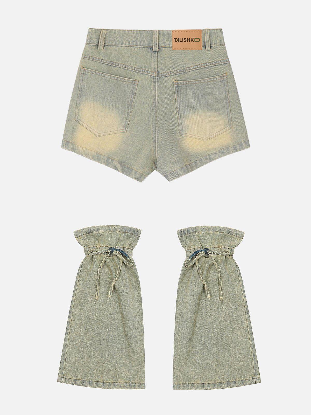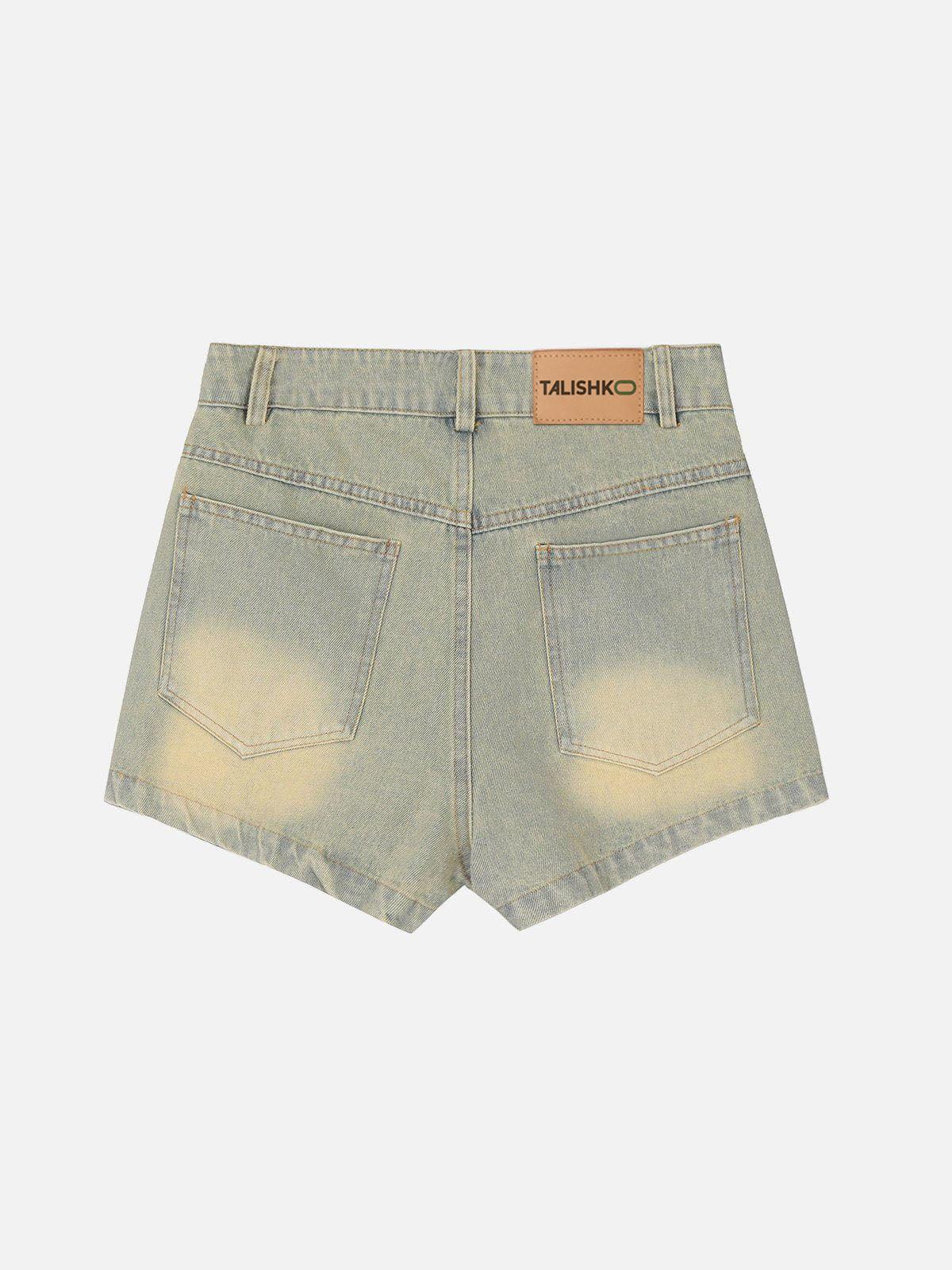 Push the boundaries of summer style with this edgy denim ensemble that effortlessly blends boldness and versatility. The distressed blue hue, accented with star-studded details, captures the essence of urban grit, while the asymmetrical zip design adds a layer of intrigue to your summer fashion inspo. Perfectly crafted in a one-size fit that adapts to your silhouette, these shorts are a testament to fearless streetwear attitude. Pair with your favorite sneakers or elevate with chunky boots for a look that’s as dynamic as the city streets. Embrace the vibe and let your outfit do the talking.