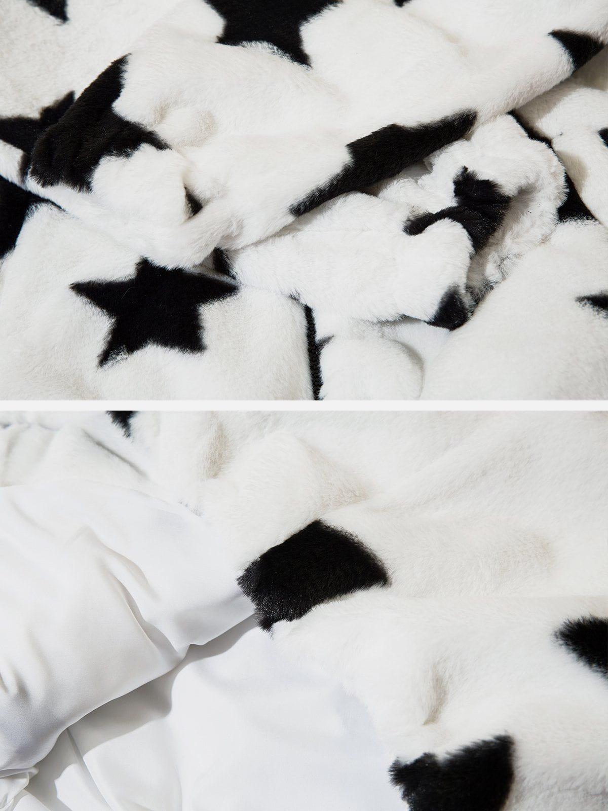 Break the mold in style with this bold, star-studded hoodie that redefines streetwear fashion. Crafted from plush fabric, this piece features an eye-catching black star pattern set against a crisp white backdrop, ensuring you stand out in any crowd. The playful hood with ear details adds a touch of whimsy, while the relaxed fit keeps you comfortable and confident. Available in a range of sizes from S to 2XL, it’s perfect for layering over your favorite Y2K-inspired outfits. Whether you’re hitting the streets or chilling with friends, this hoodie is your go-to for effortless cool. Grab yours and redefine your outfit game.