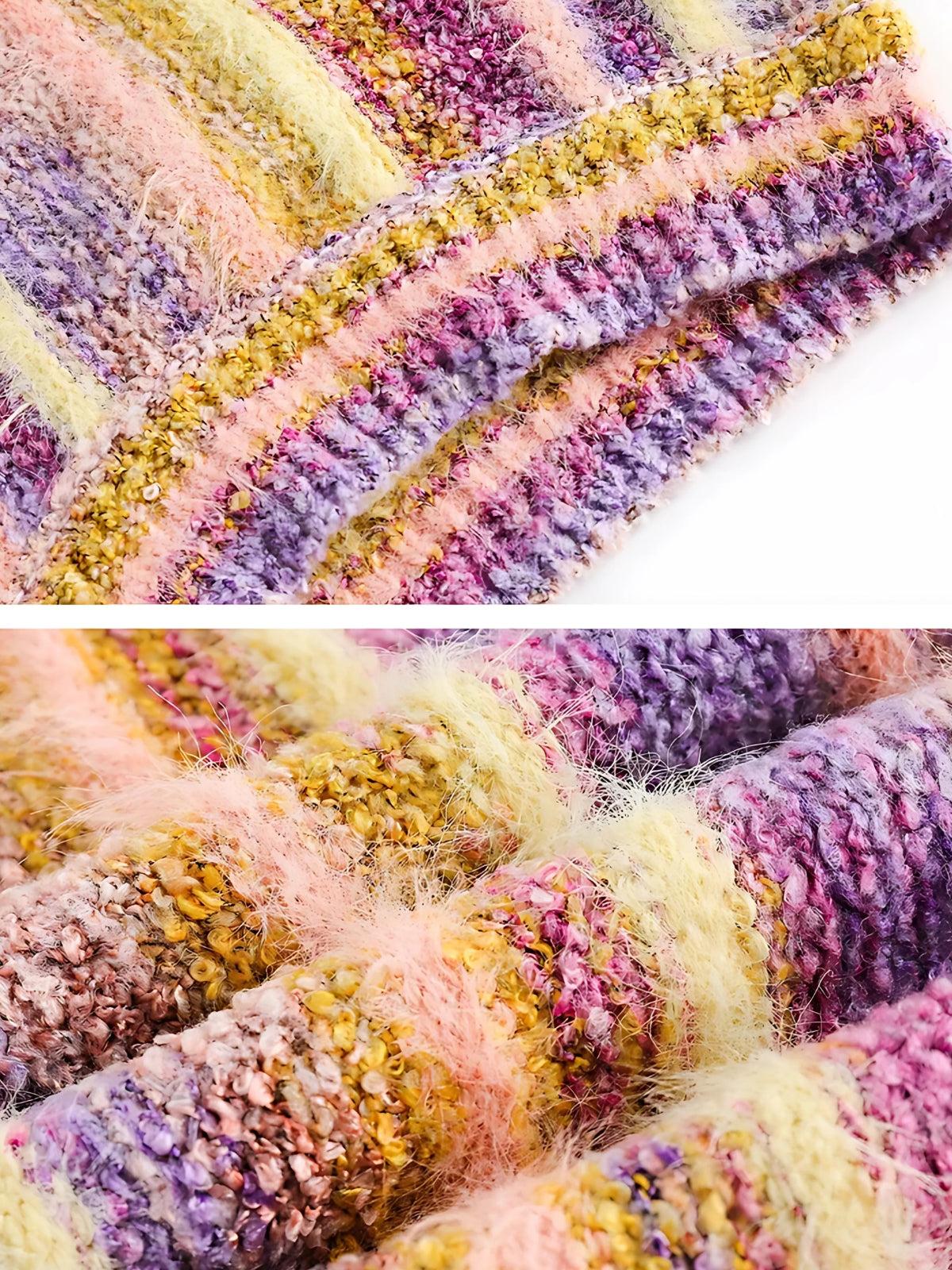 Ride the wave of retro vibes with this vibrant knit vest, where pastel pinks and blues dance harmoniously with bold yellows, creating a kaleidoscope of urban energy. Its soft texture hugs you comfortably, offering a laid-back fit perfect for layering over tees or under oversized jackets. Available in versatile sizes from M to 2XL, this piece effortlessly blends into your wardrobe, adding a splash of color to your streetwear fashion. Embrace the y2k spirit and let your outfit ideas flow with each wear.