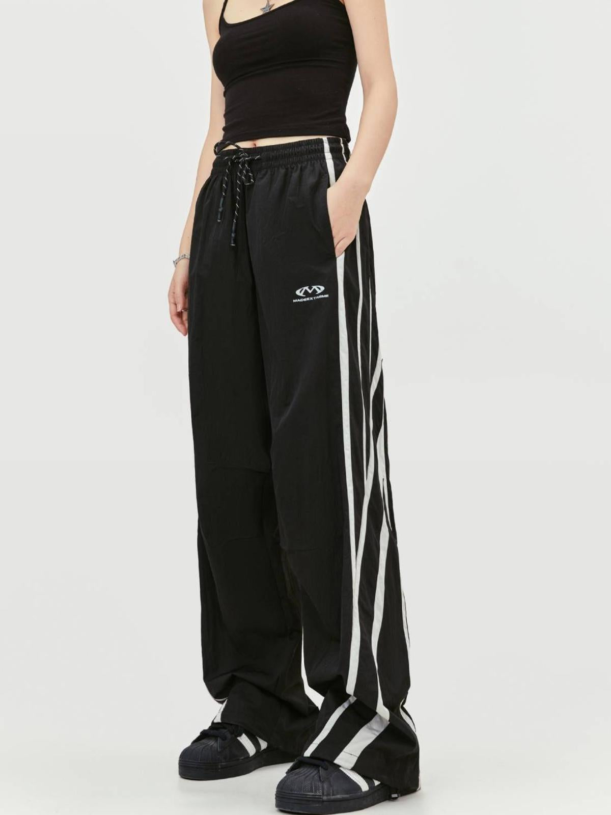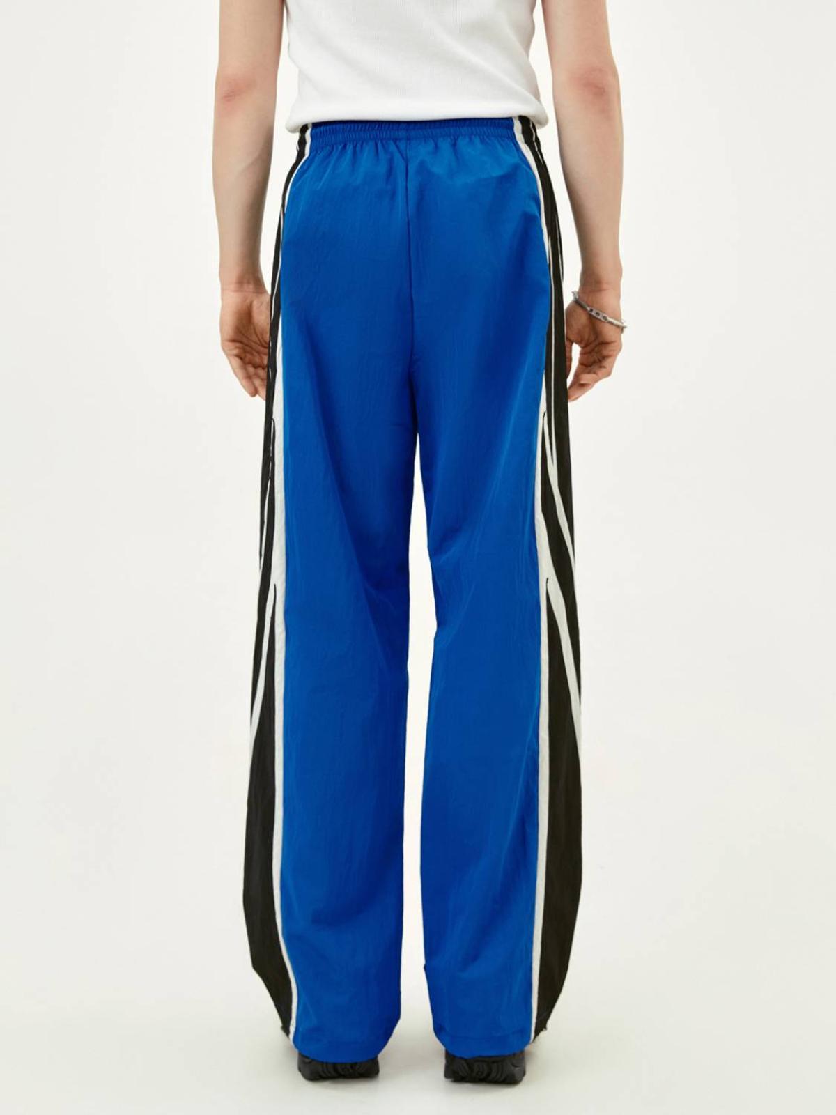 Break the mold with these striking blue pants, designed to redefine streetwear fashion with their bold color and sleek silhouette. The dynamic contrast of black and white side stripes adds an edgy flair, making them the perfect choice for those who dare to stand out. Whether you’re rocking them in a casual setting or pairing them with your favorite oversized hoodie for some serious y2k vibes, the relaxed fit ensures comfort and style in equal measure. Available in sizes M to XXL, these pants are your go-to for effortless cool. Elevate your outfit game today.