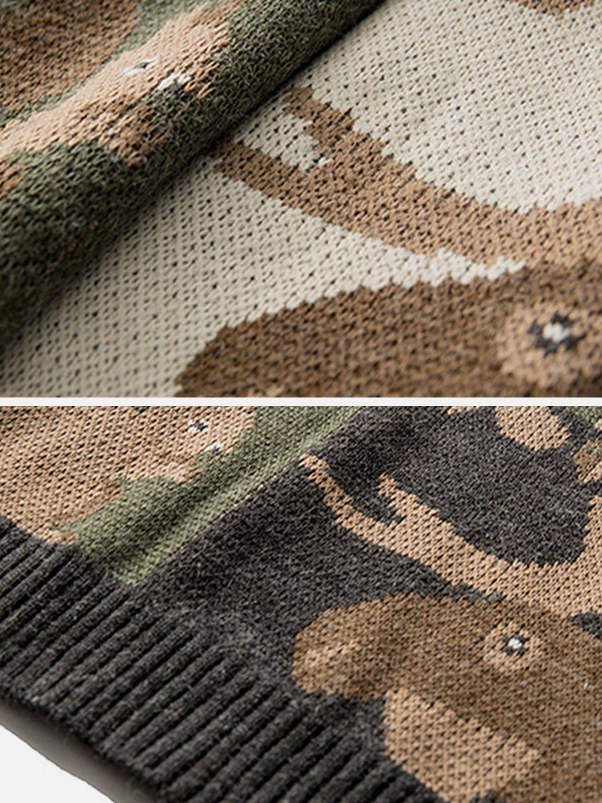 Embrace the wild with this bold, nature-inspired knit that weaves together the essence of the forest in every thread. This sweater features a unique tapestry of woodland creatures, from the wise owl to the majestic bear, all set against earthy beige and dark gray tones. The intricate textures and patterns demand attention, making it a standout piece in any streetwear fashion lineup. Available in a relaxed fit across sizes S, M, L, and XL, this piece offers both comfort and versatility, perfect for layering over a crisp white tee or pairing with your favorite cargos. Elevate your y2k outfits with a touch of nature’s charm.