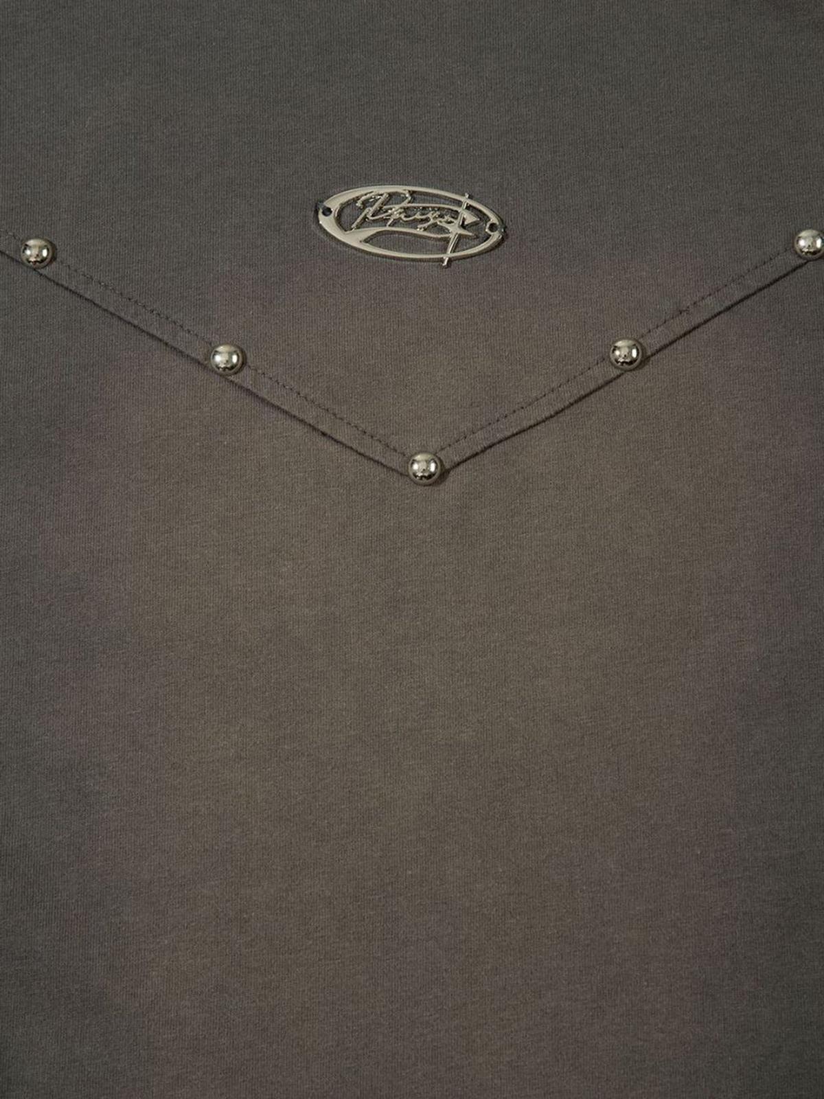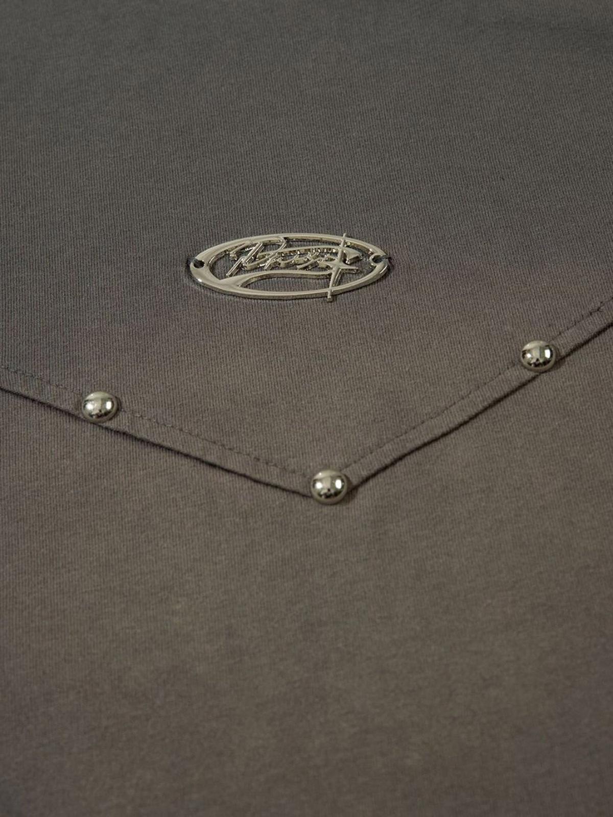 Break the mold with this edgy tee that effortlessly balances bold design and urban flair. The striking gray fabric is punctuated by sleek metallic studs that trace the lines of its unique geometric pattern, adding a touch of rebellion to your summer style. Available in a range of sizes from S to 2XL, this tee offers a comfortable fit for every streetwear enthusiast. Pair it with black skinny jeans or cargo pants to amplify your summer fashion inspo. Elevate your wardrobe and step out with confidence.