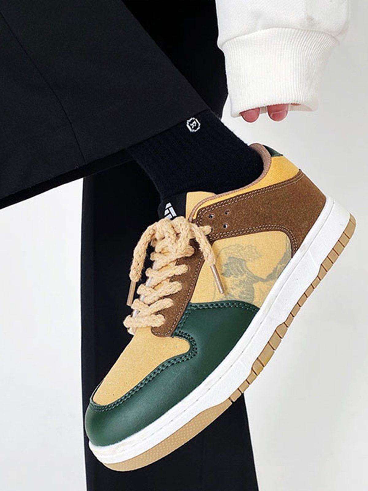 Step into the future of streetwear fashion with these bold kicks, where earthy brown tones meet urban flair. The sleek blend of deep green and tan overlays creates a striking contrast, perfect for those who refuse to blend in. Textured rope-like laces add a rugged edge, while the subtle graphic detail on the side elevates your look with a touch of mystery. Available in sizes 36 through 44, these sneakers promise a comfortable fit that hugs your feet just right. Pair them with your favorite y2k outfits or modern streetwear ensembles for a style that’s undeniably yours. Ready to turn heads? Lace up and own the streets.