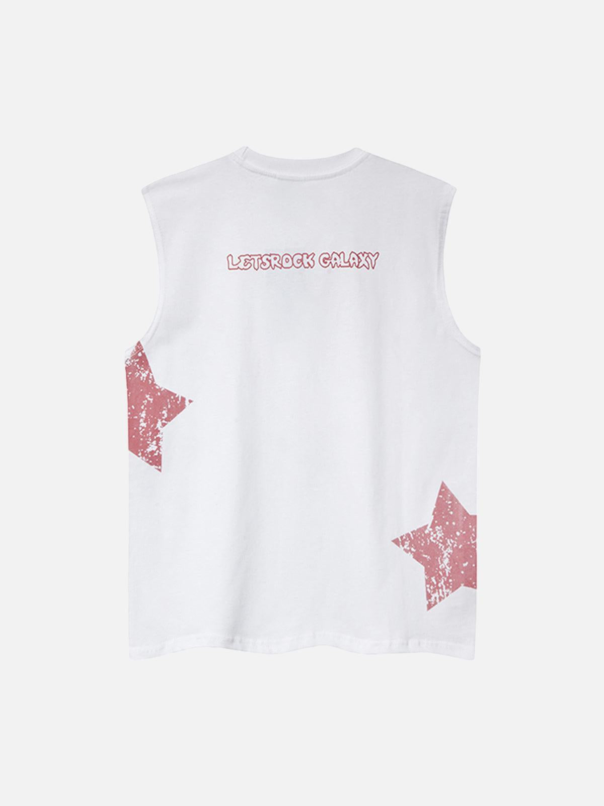 Turn heads with this sleeveless stunner, where bold star graphics collide with a distressed black canvas for an unapologetically urban vibe. The edgy, raw hem and relaxed fit make it an essential piece for layering over long sleeves or pairing with your favorite denim for effortless streetwear fashion. Available in versatile shades of black, gray, and white, and ranging from S to 2XL, it’s designed for those who refuse to blend in. Embrace your individuality with this piece that’s all about making your everyday look anything but ordinary.