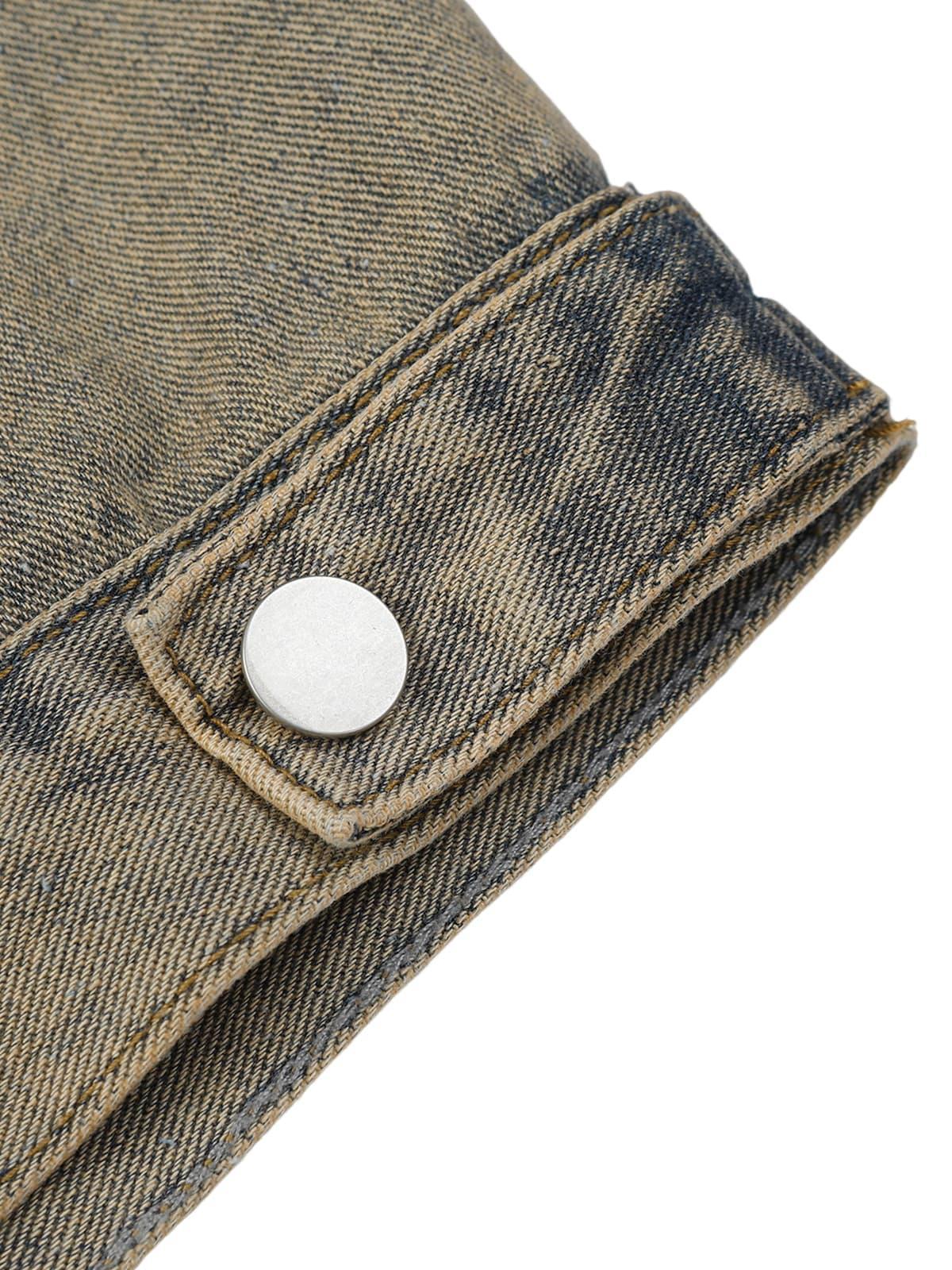 Embrace the unapologetic edge of urban culture with this bold denim jacket, featuring an artfully faded gray wash that screams retro cool. The striking gothic font emblazoned across the chest brings a rebellious flair, while the snug fit ensures you stay effortlessly stylish whether you’re rocking it in medium, large, XL, or 2XL. Layer it over your favorite Y2K outfits for an effortlessly fresh take on streetwear fashion. Snap it up and redefine your outfit inspo with every wear.