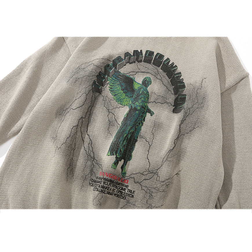 The sweater is mainly based on a solid color, and the print on the front of the sweater gives a sence of hip-hop visual. Unisex, perfect for wearing alone or as a couple outfit.