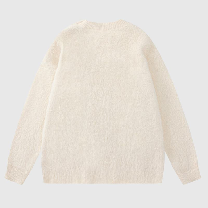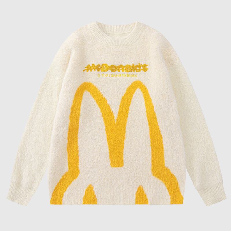 Features: Pullover, round neck, long sleeves, cartoon print design, loose fit, jacquard weaving, couple wear.