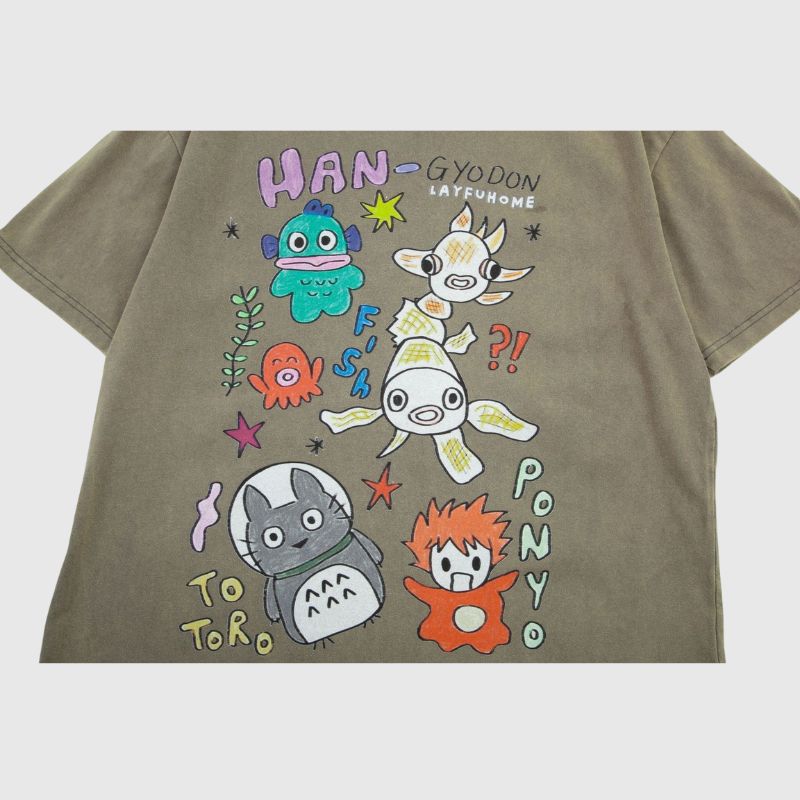 Features: Tee, crew neck, short sleeves, solid color, anime pattern printed design, washed, distressed, loose fit, soft and breathable, unisex.