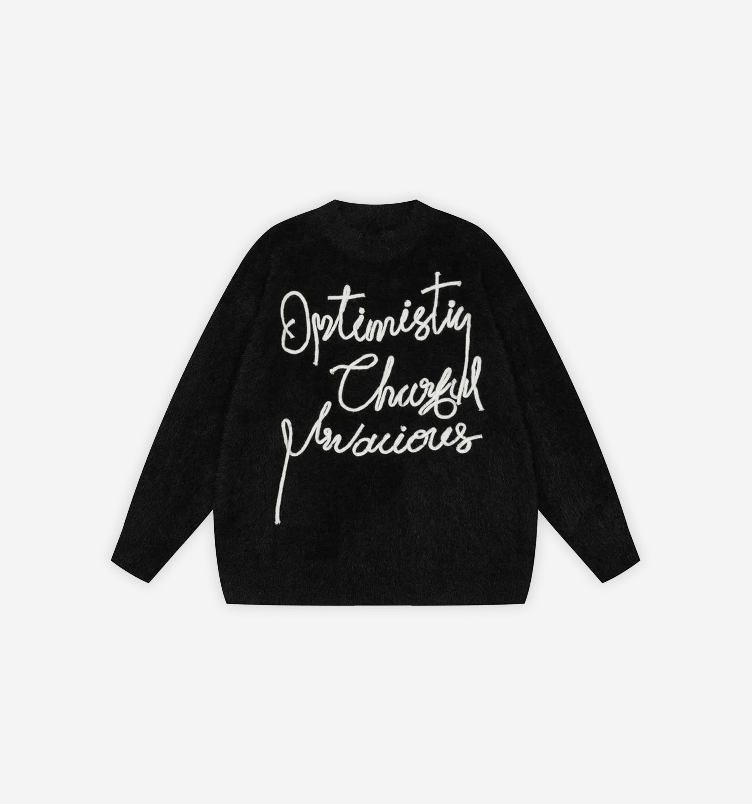 The ‘Amaré’ knitted sweater captures the spirit of iconic Y2K knit sweaters, combining ultra-soft textures with expressive embroidery. Featuring bold, positive wording, this sweater is both cozy and distinctive—perfect for adding a unique touch to your everyday outfits.